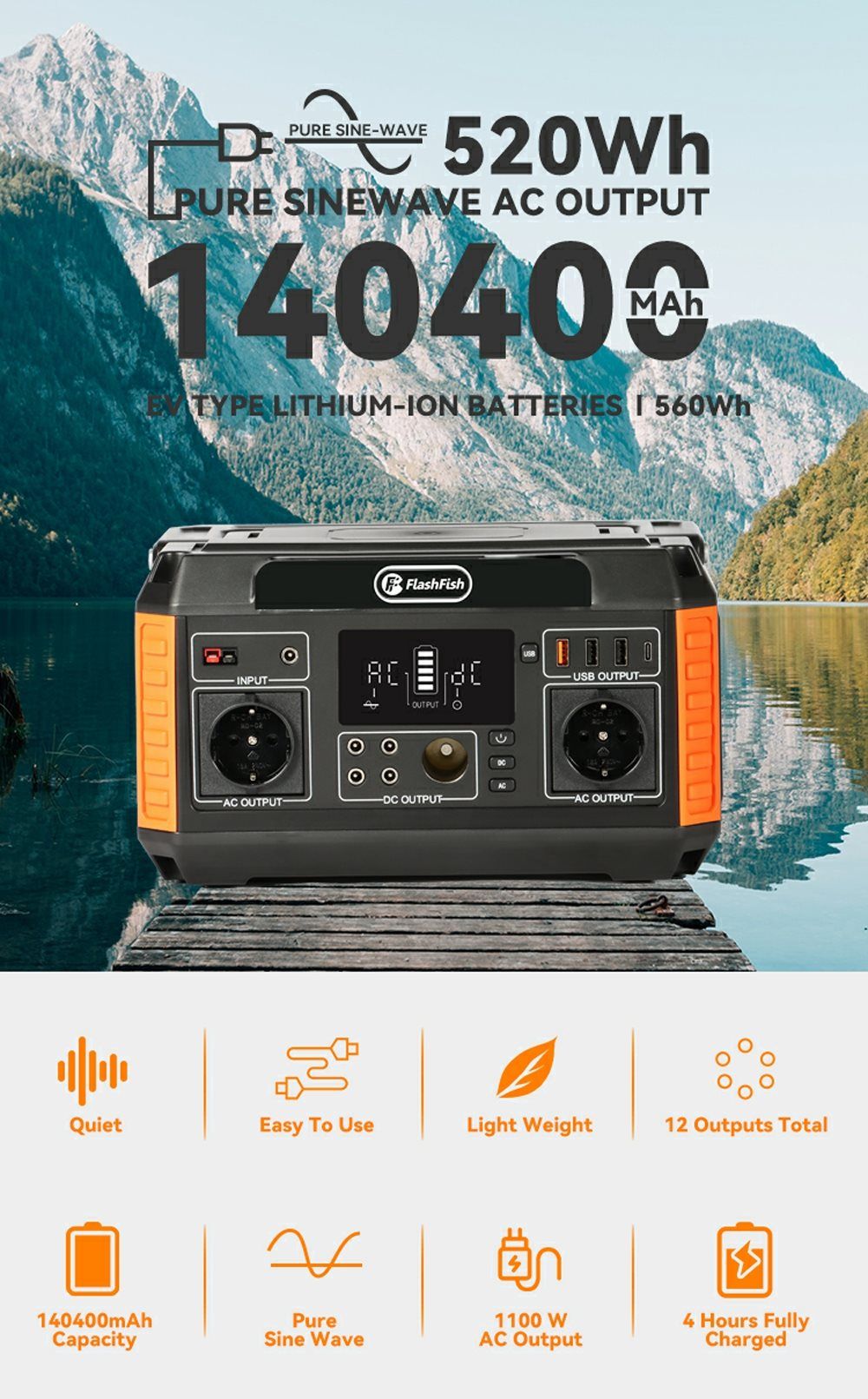 Flashfish P60-це портативна, компактна та практична електростанція з ємністю 520 VT-GO (140400 MAD/3,7 В) для зарядки електронних пристроїв.