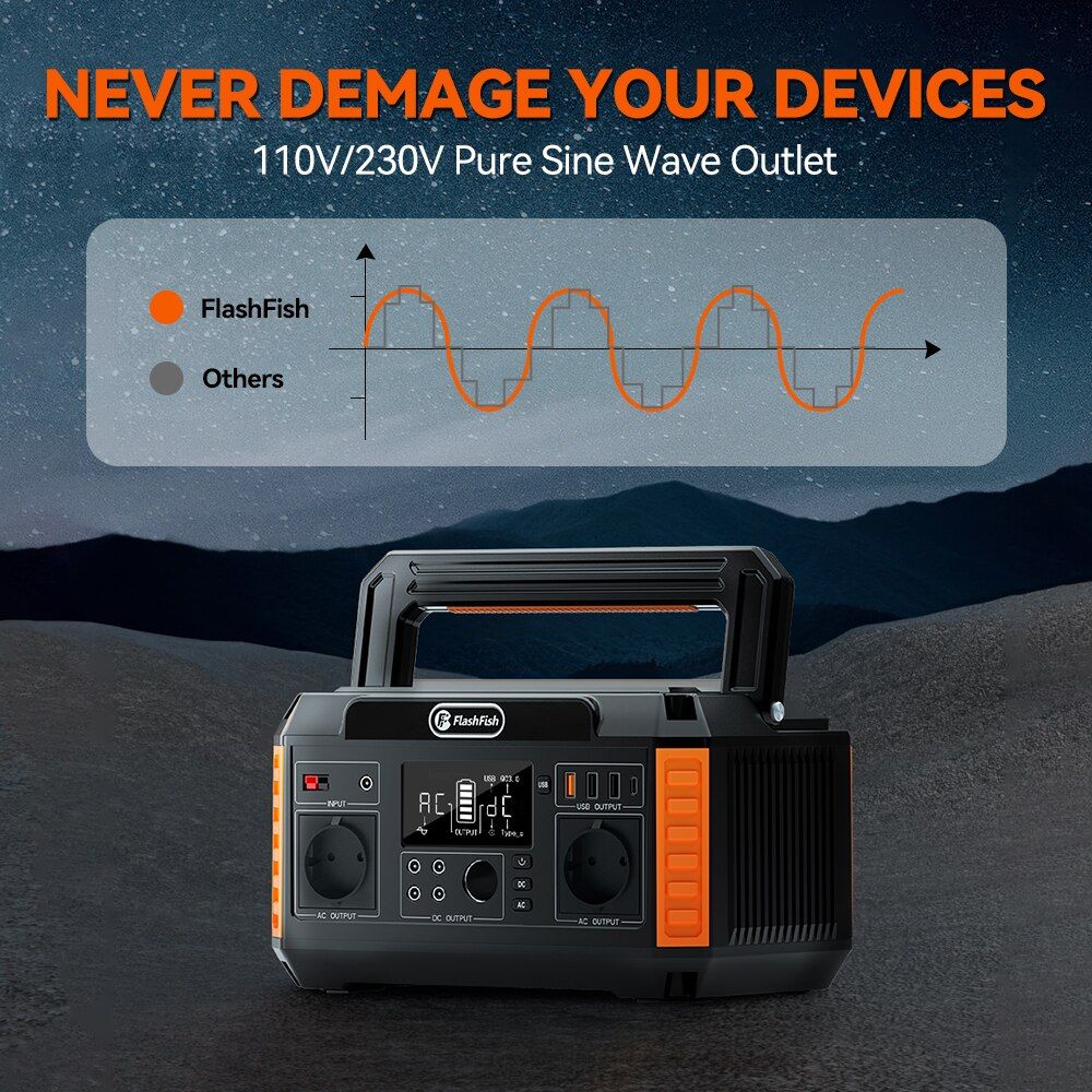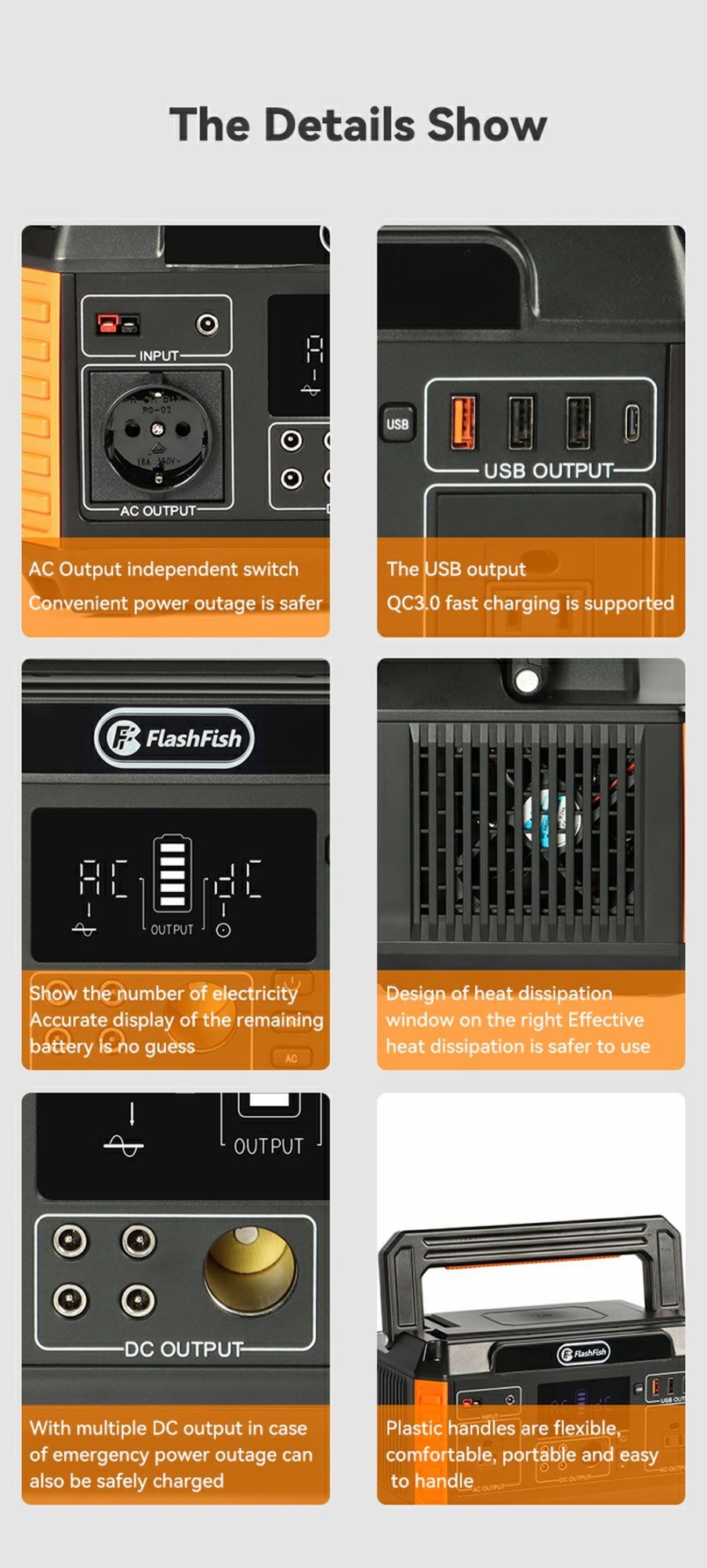 Електростанція Flashfish P60 розроблена для використання в якості основного або резервного джерела живлення та забезпечить електроенергію в надзвичайних ситуаціях та екстремальних ситуаціях, коли джерело живлення не доступне.