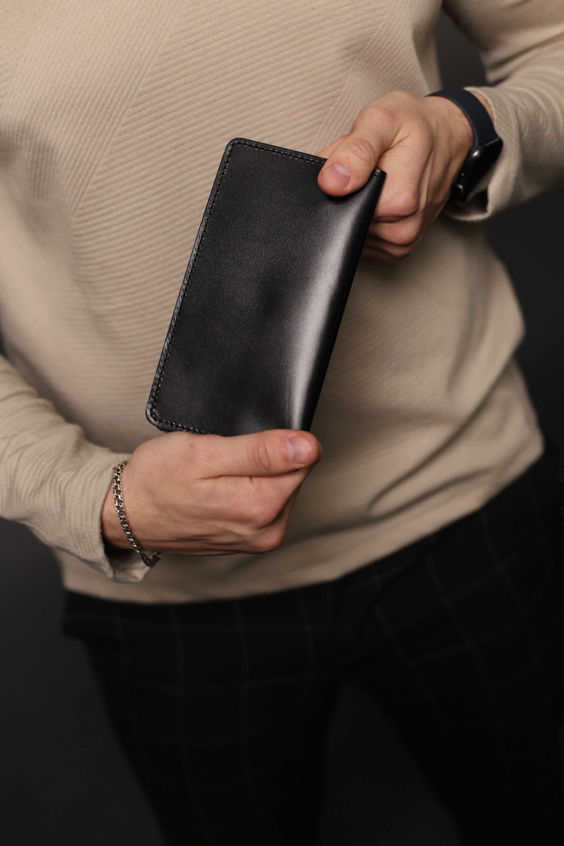 Чорне портмоне має класичний і стриманий вигляд, що робить його універсальним аксесуаром, що підходить до будь-якого образу та події.