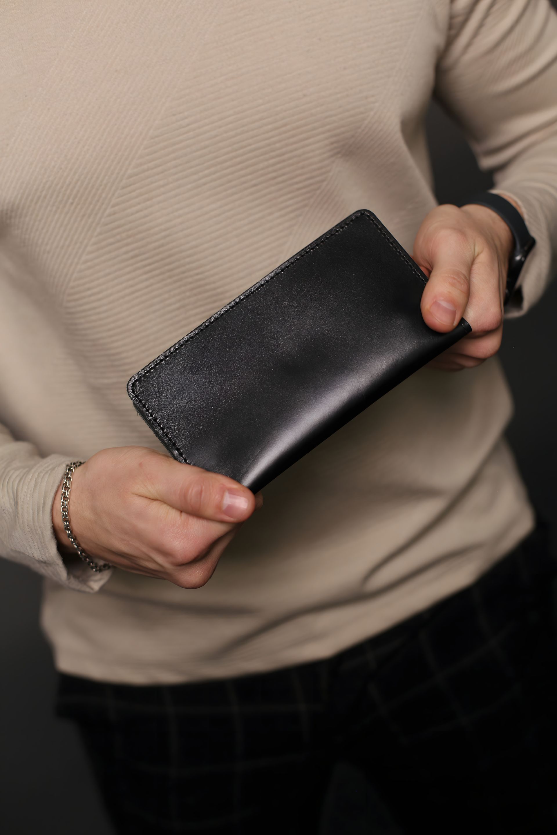 Чоловіче портмоне із натуральної гладкої шкіри в чорному кольорі - символ елегантності та смаку.