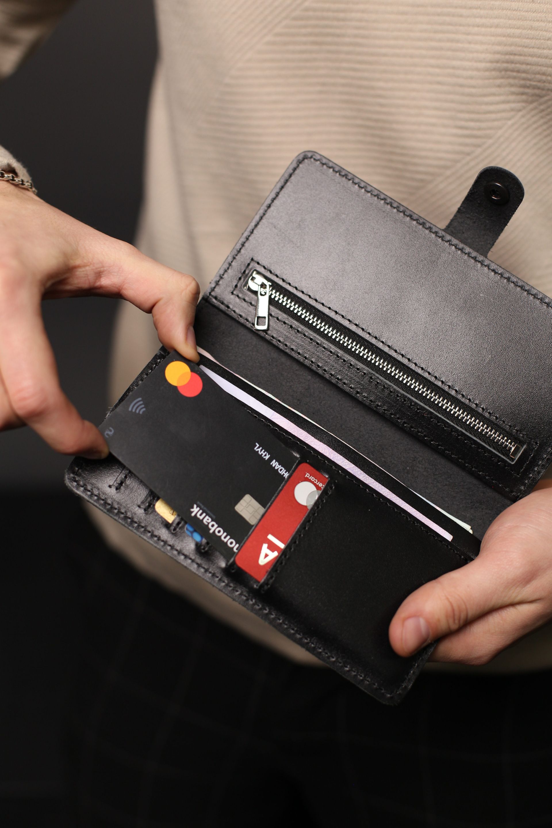 Завдяки своєму дизайну, портмоне забезпечує зручний доступ до грошей, карт, документів та інших необхідних предметів.