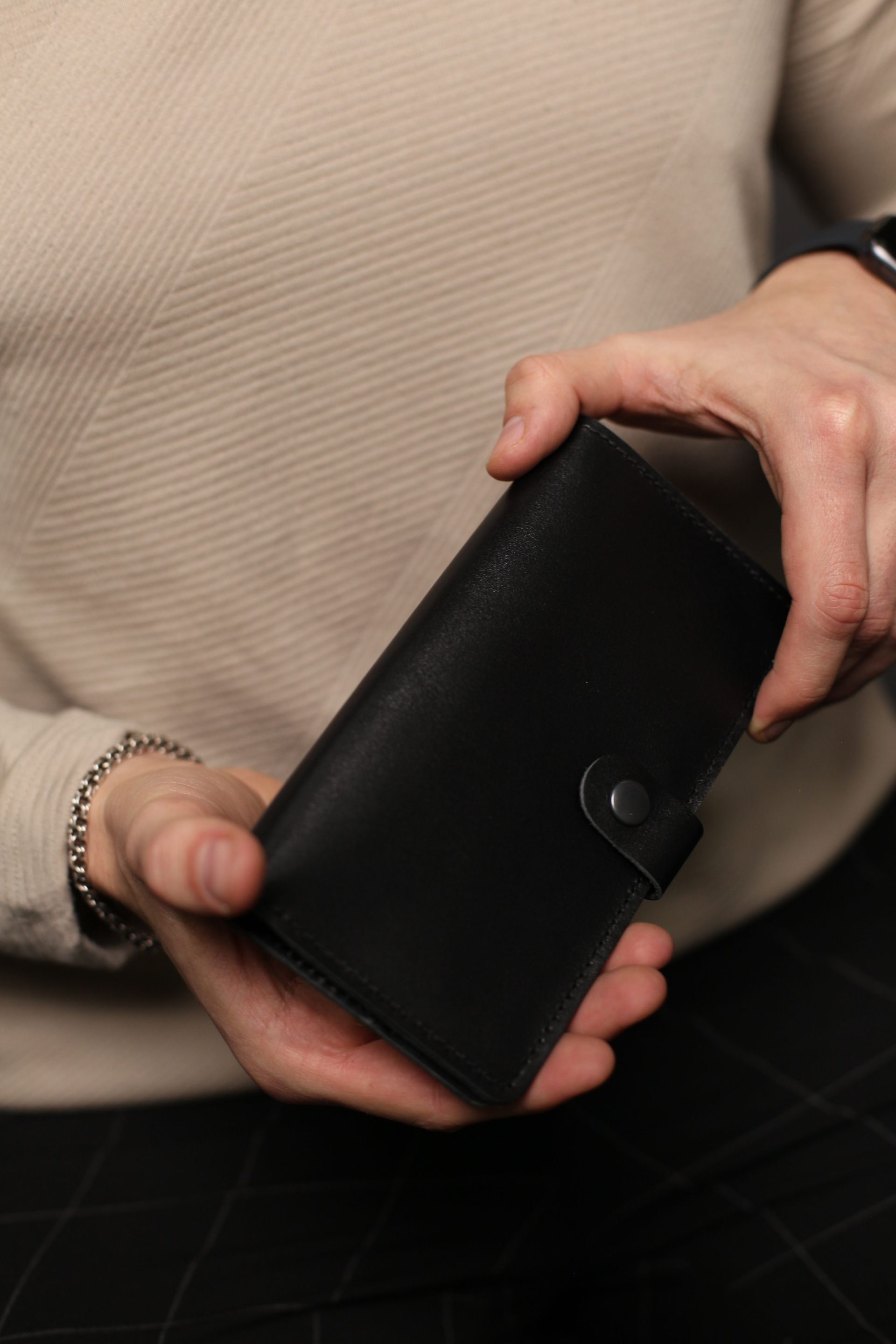 Чоловіче портмоне з натуральної гладкої шкіри - це ідеальний вибір для чоловіків, які цінують якість та елегантність.