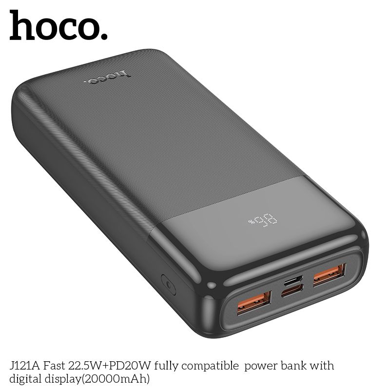 Power Bank HOCO J121A Fast 22.5W + PD20W надійно надійний Power Bank with digital display (20000mAh) Black