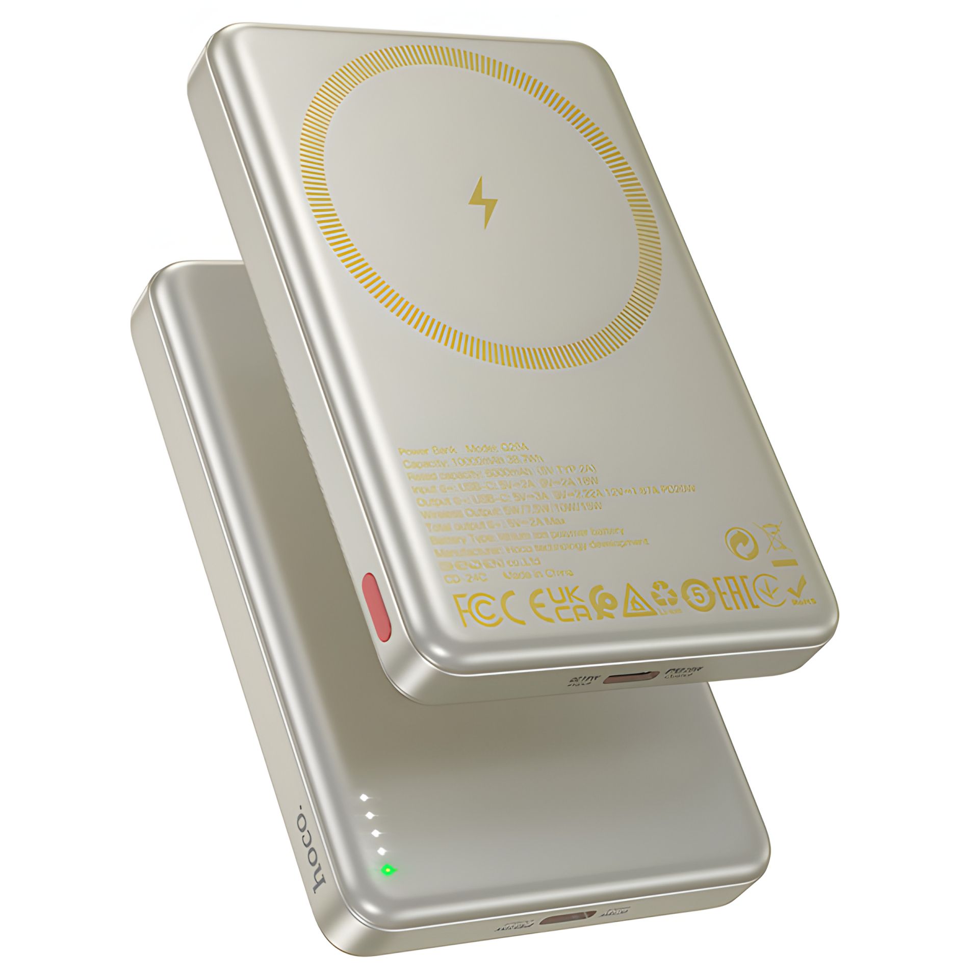 Повербанк Hoco Q26A 10000mAh PD 20W магнітний з функцією бездротової зарядки titanium gold