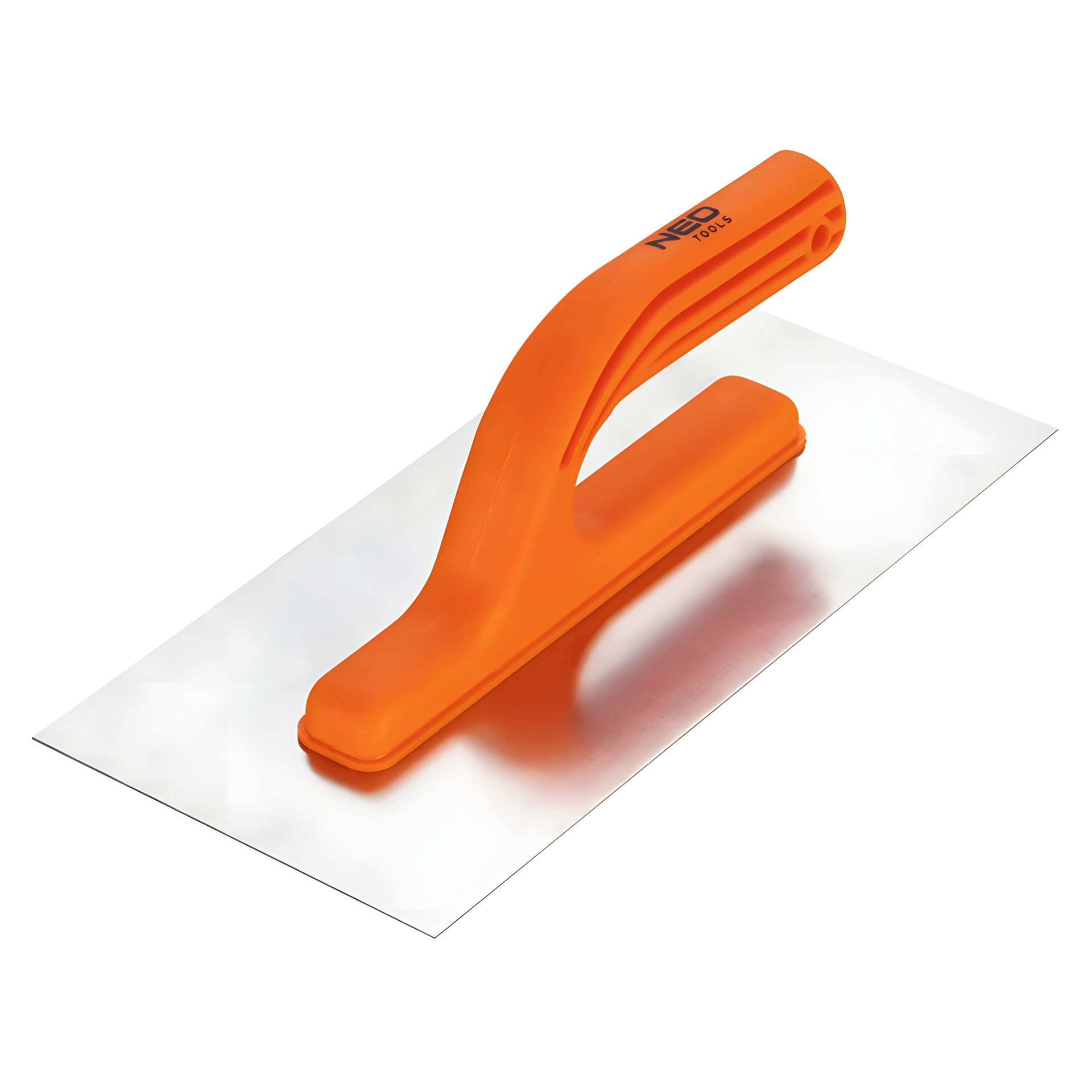 Тертка будівельна NEO довжиною 270 мм. Служить для нанесення та вирівнювання клею, будівельних розчинів, штукатурок. Робоча поверхня із високоякісної нержавіючої сталі. Ергономічна пластмасова ручка добре лягає у долоню, що підвищує комфорт роботи. Бренд NEO виправдовує очікування фахівців.