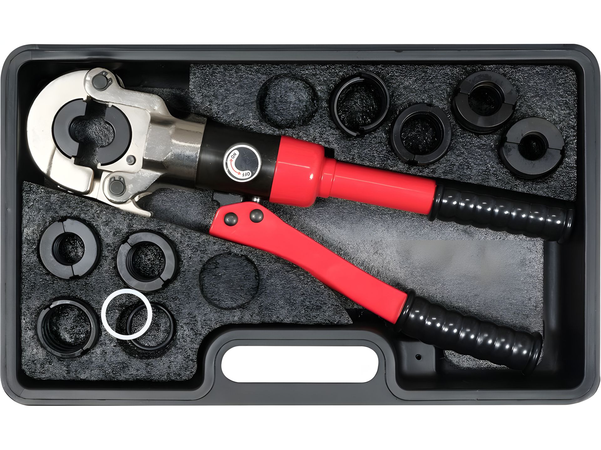 Гідравлічний ручний прес для обтиску фітингів на трубах PEX-AL-PEX, PERT-AL-PERT з набором з 8 матриць.