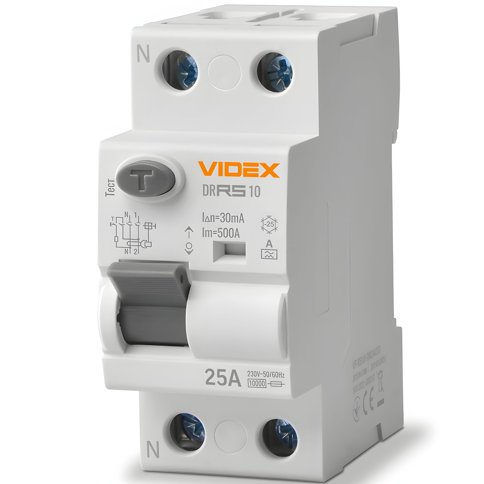 Захисного відключення пристрій (ПЗВ) VIDEX RESIST А 2п 30мА 10кА 25А (VF-RS10-DR2А25)