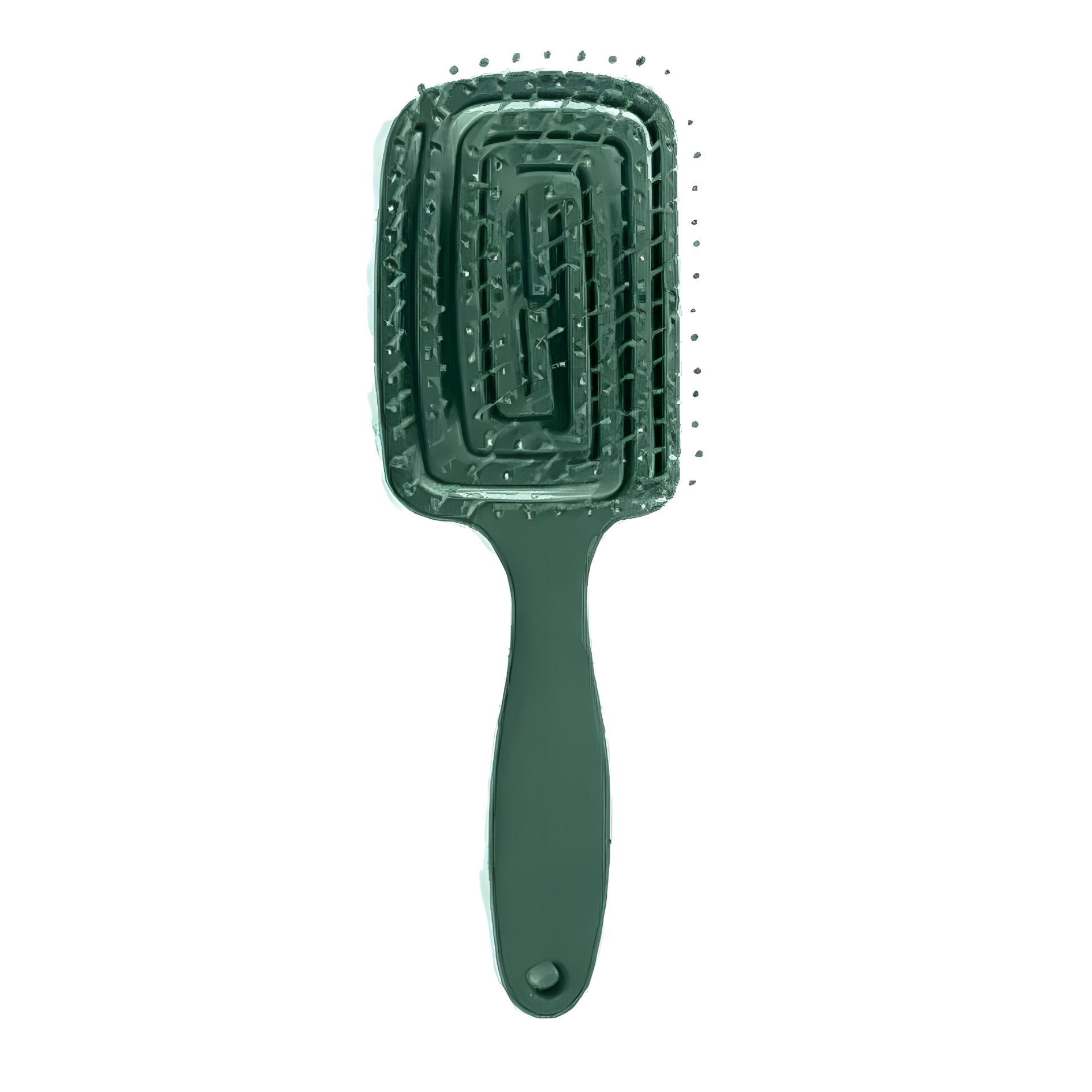 Продувна щітка прямокутна зелена для розплутування та укладання волосся феном