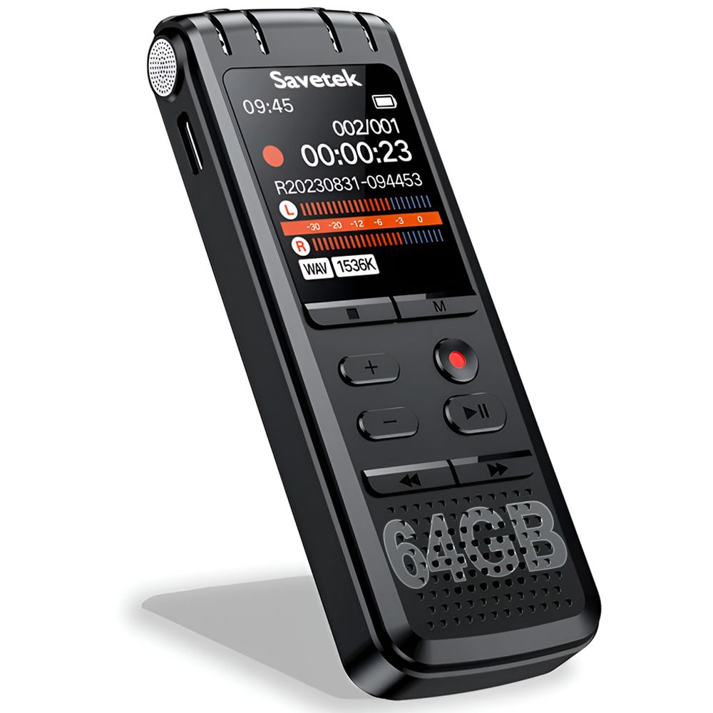 Цифровий диктофон Savetek GS-R58 стане вашим надійним помічником для запису інтерв'ю, створення голосових нотаток, аудіокниг або прослуховування музики. Завдяки широкому функціоналу він дозволяє зберігати важливу звукову інформацію та відтворювати її в зручний час.