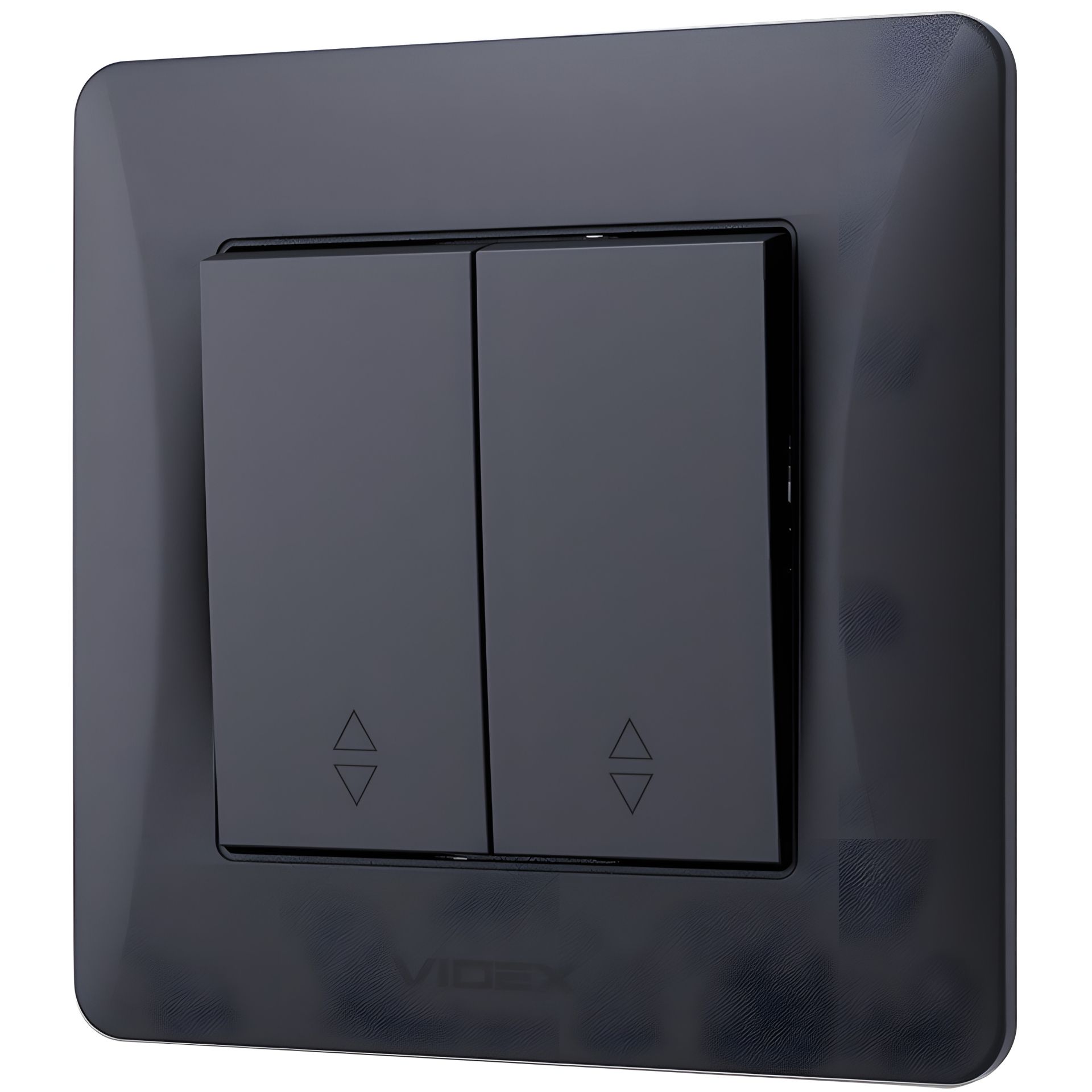 Проходной выключатель 2-клавишный с повышенной огнеупорностью VIDEX BINERA VF-BNSW2P-BG черный графит
