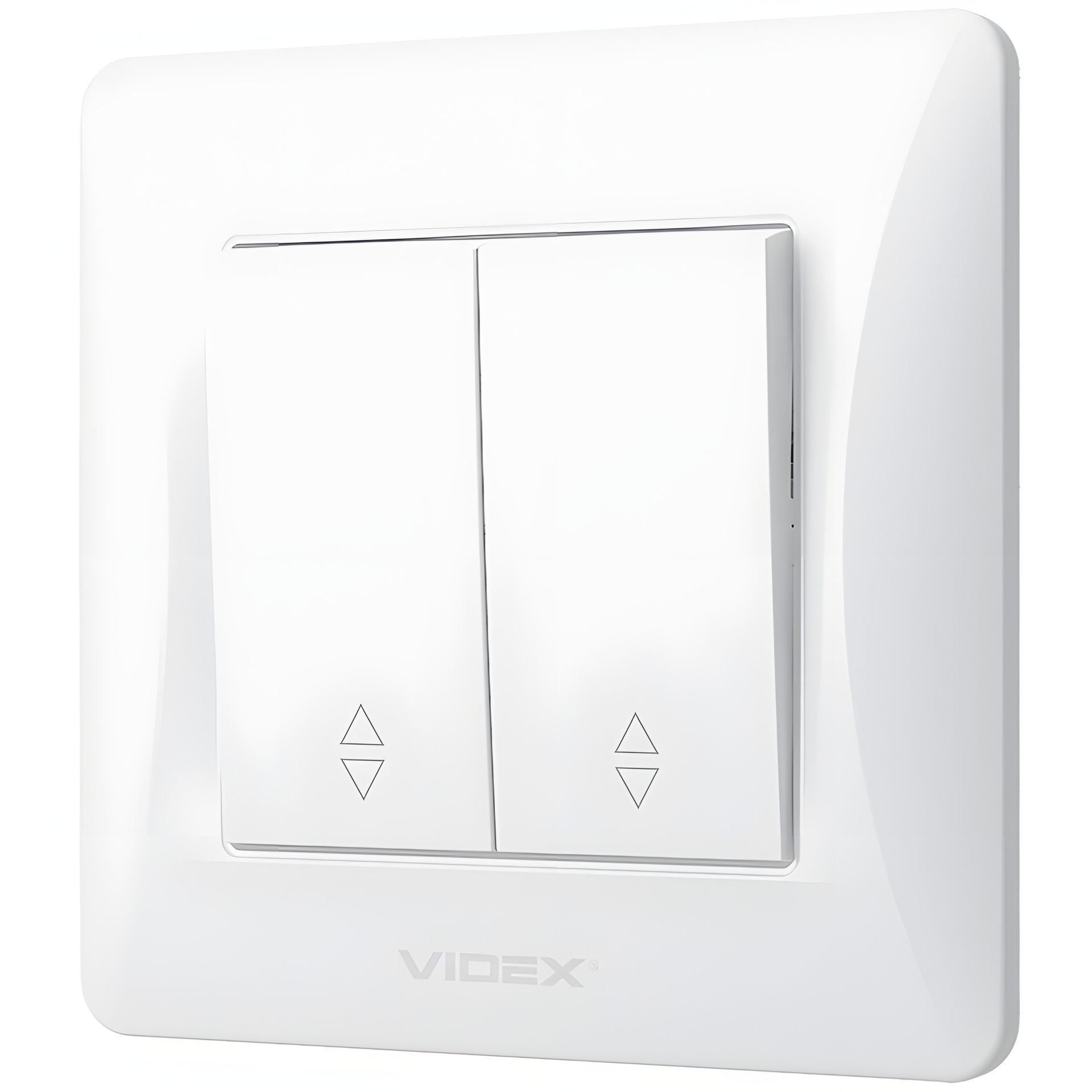 2-клавішний прохідний вимикач VIDEX BINERA VF-BNSW2P-W білий (з підвищеною вогнетривкістю)