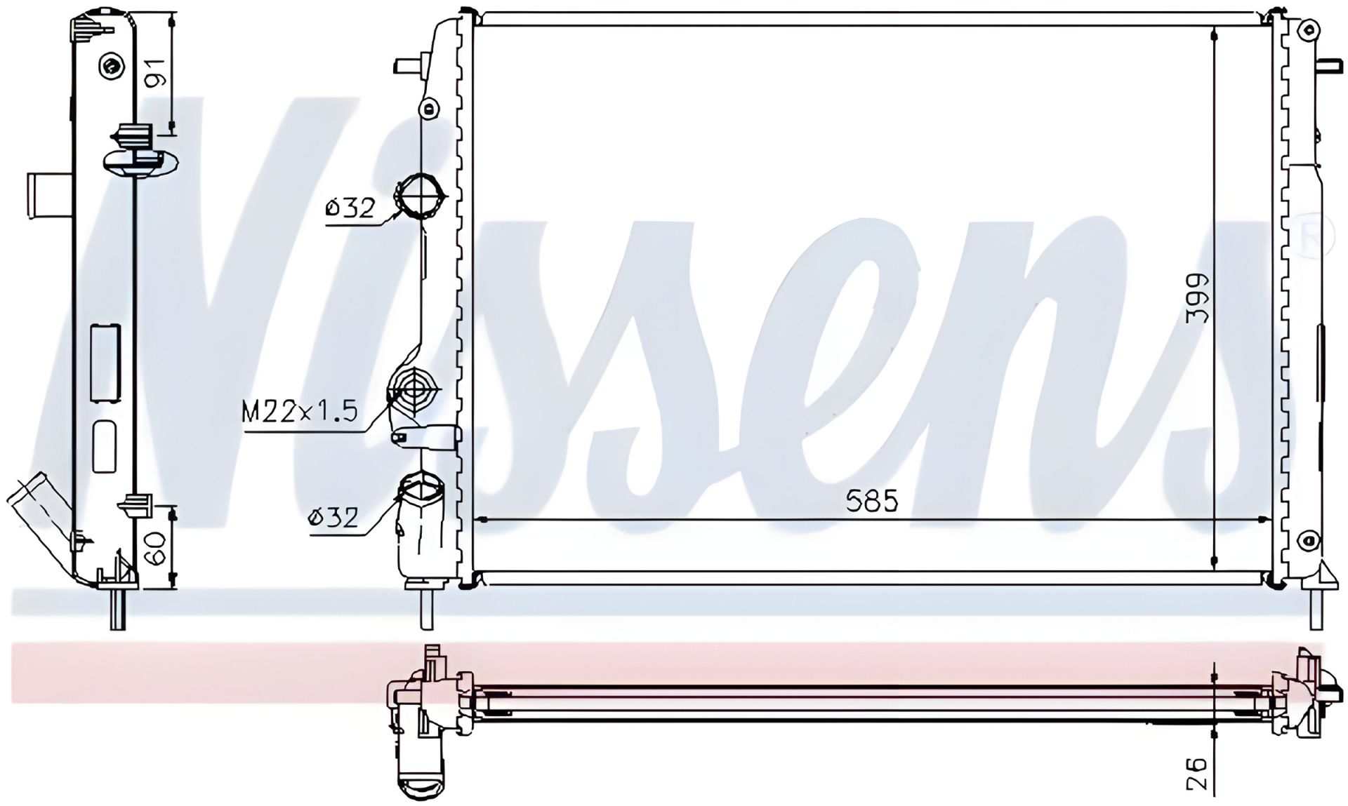 Радіатор двигуна охолодження RENAULT SCÉNIC, NISSENS (63896A)