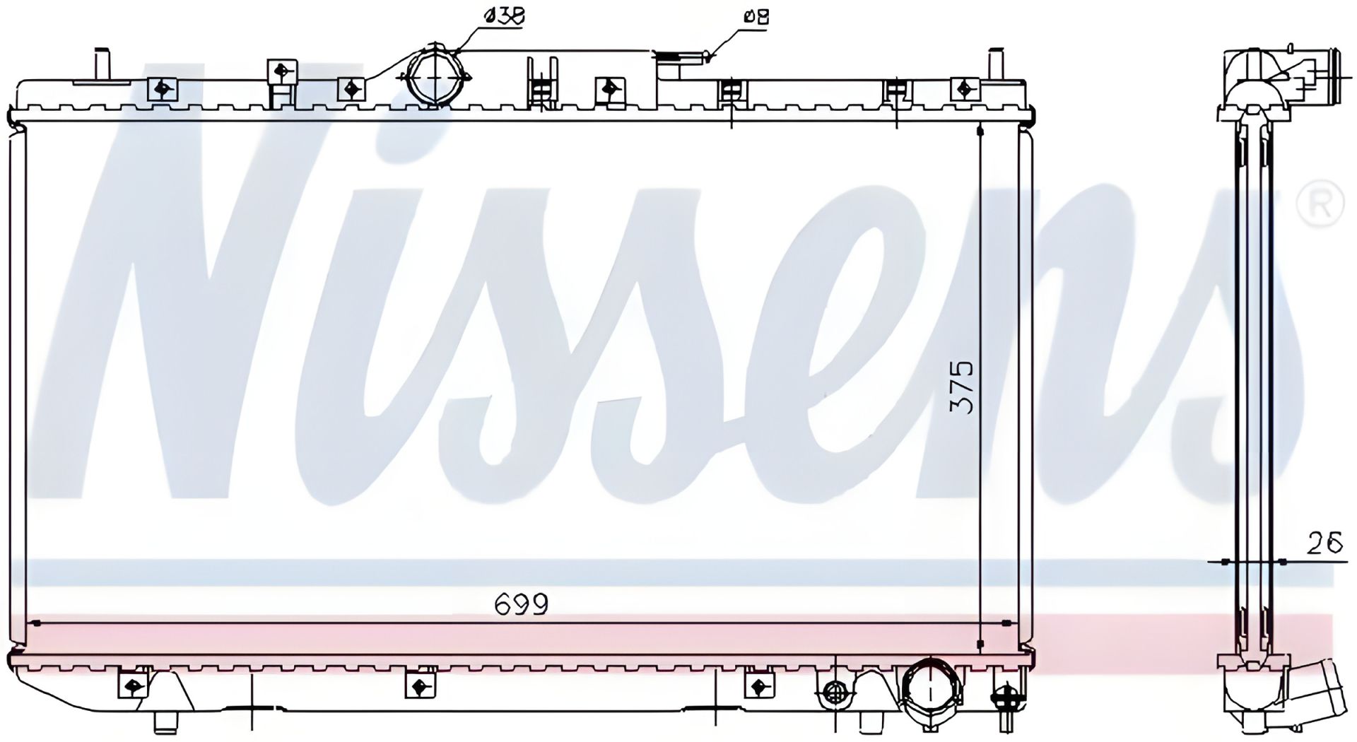 Двигунний радіатор охолодження TOYOTA AVENSIS, NISSENS (64643A)