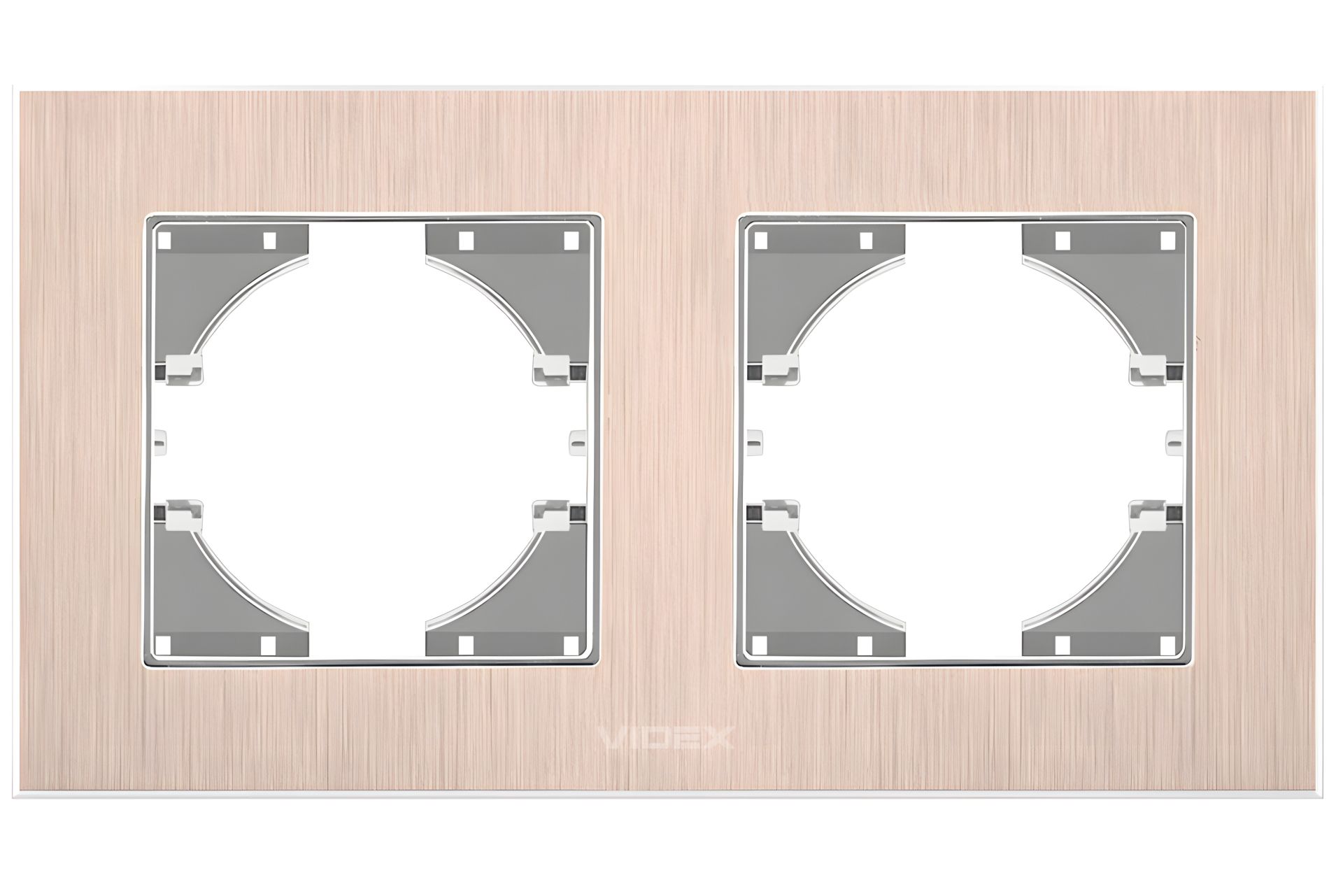 Горизонтальна алюминиевая рамка VIDEX BINERA VF-BNFRA2H-CP на 2 поста медного цвета