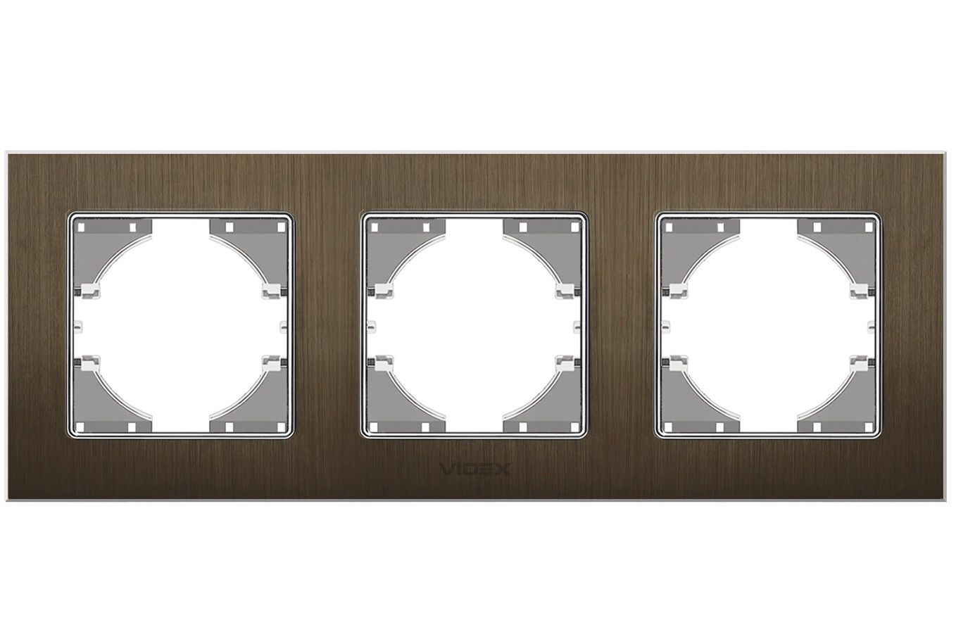 Рамка алюминиевая горизонтальная на 3 поста VIDEX BINERA VF-BNFRA3H-CH шоколадная