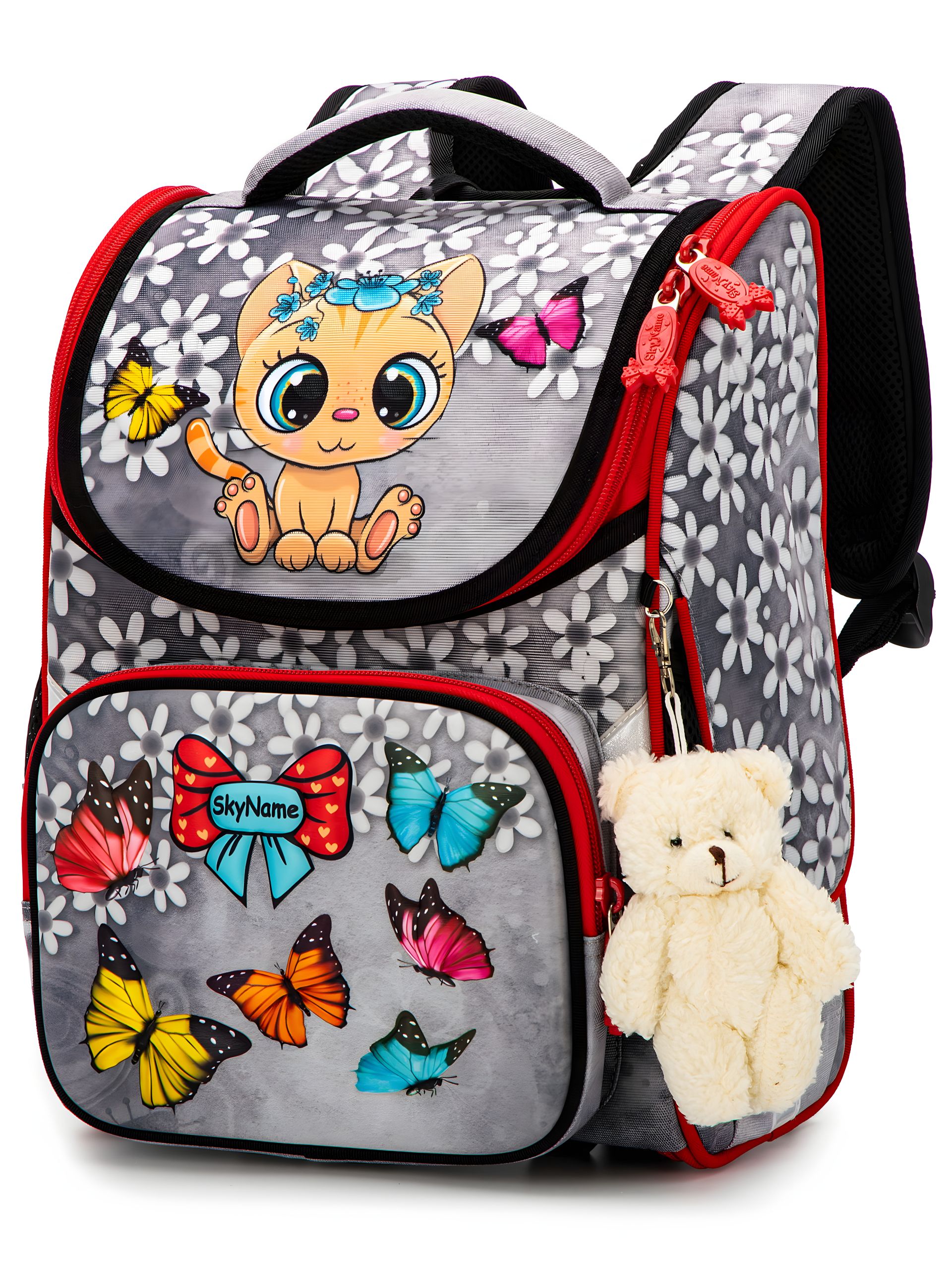 Шкільний ранець для дівчинки Sky Name з одним відділенням, червоно-чорний