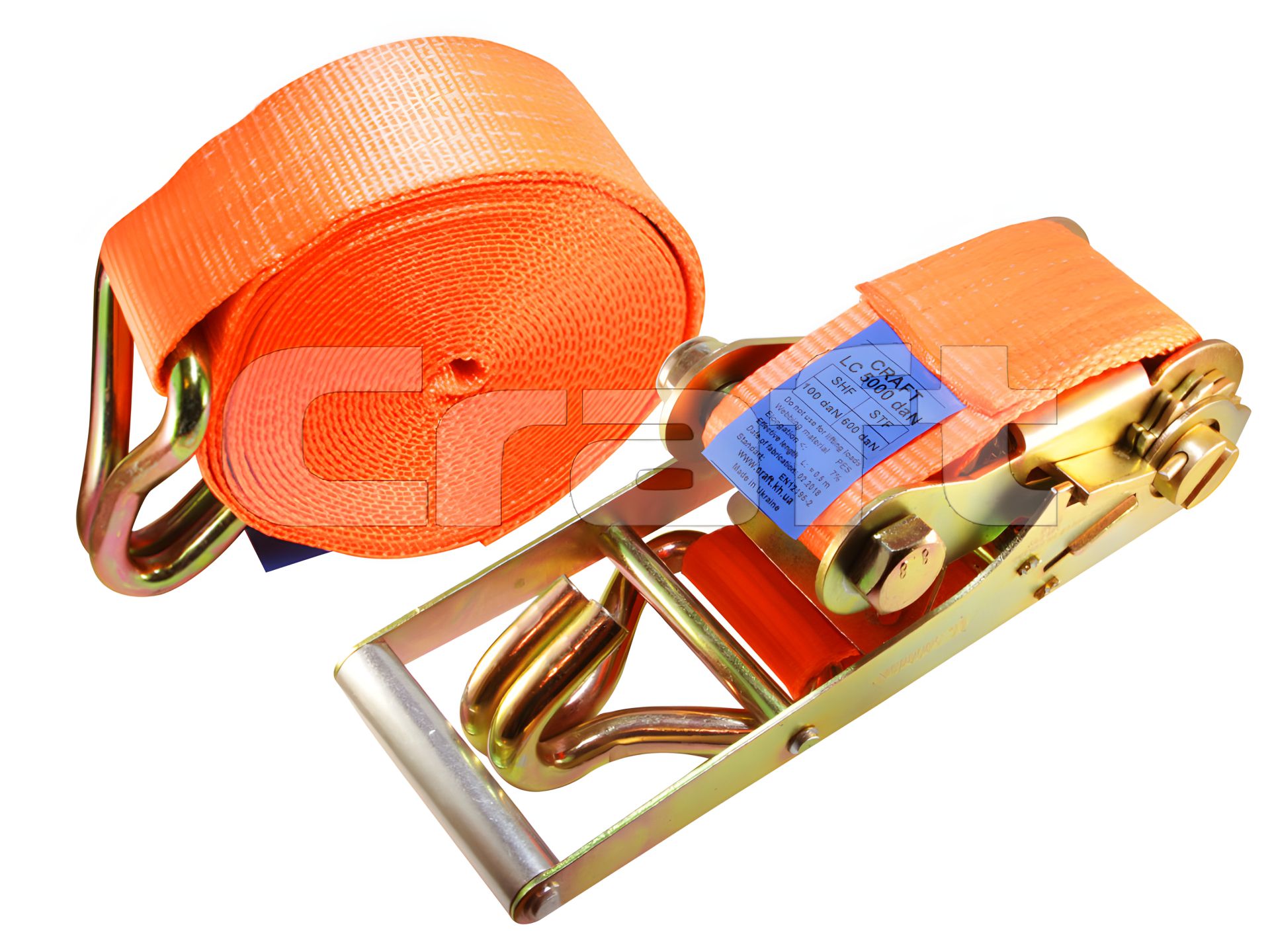 Стяжні ремені виробництва нашого підприємства, мають маркування відповідного стандарту EN12195-2 «Креплення вантажу. Безпека. Кріпильні стяжні ремені з хімічних волокон», можуть застосовуватися для міжнародних вантажоперевезень.