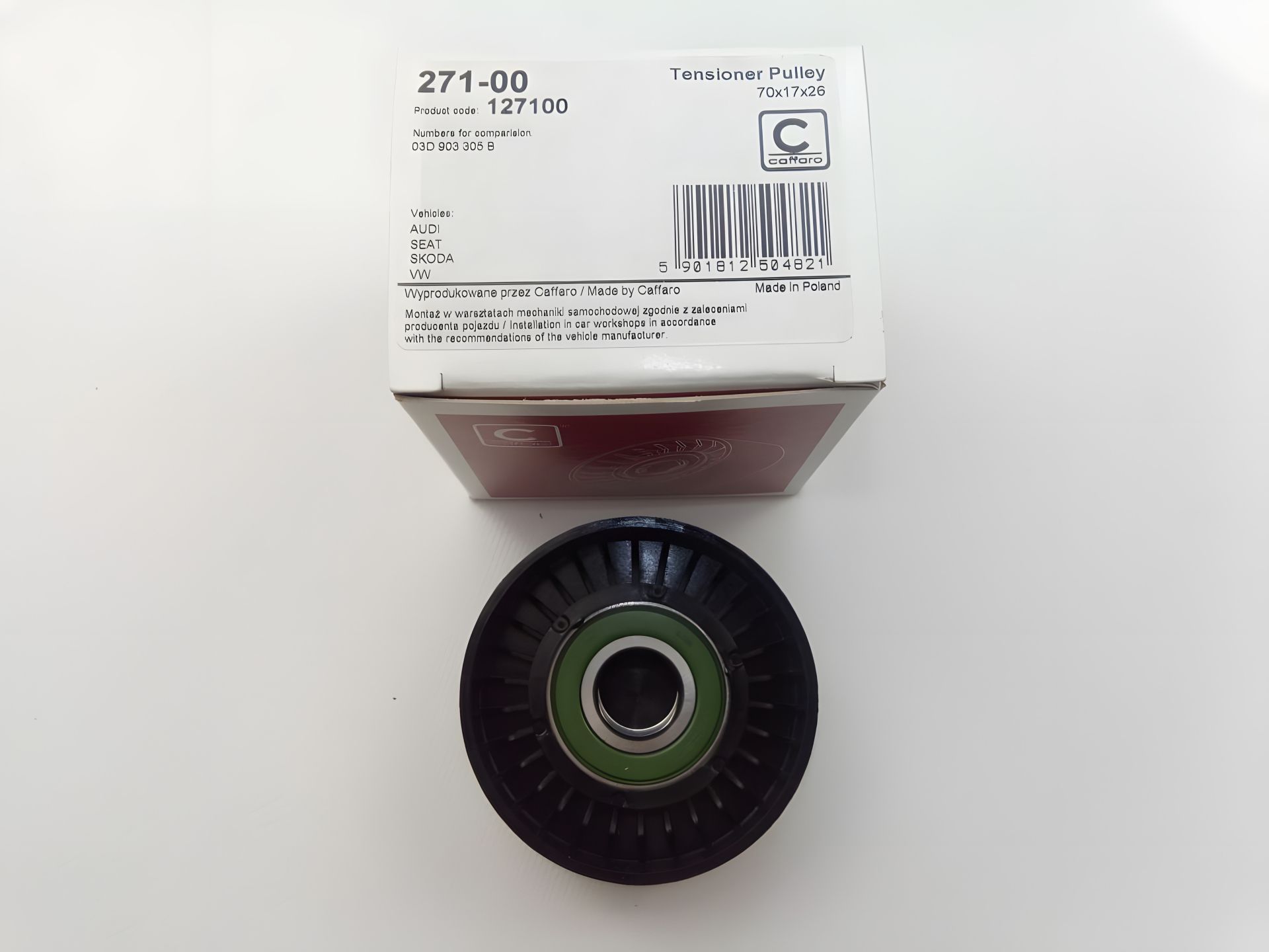Внутрішній діаметр [мм]: 17 Ролик ременя генератора натяжний FIAT, CAFFARO (13-96) пласт. Матеріал виготовлення: Полімер Зовнішній діаметр [мм]: 65.1 65x17x29