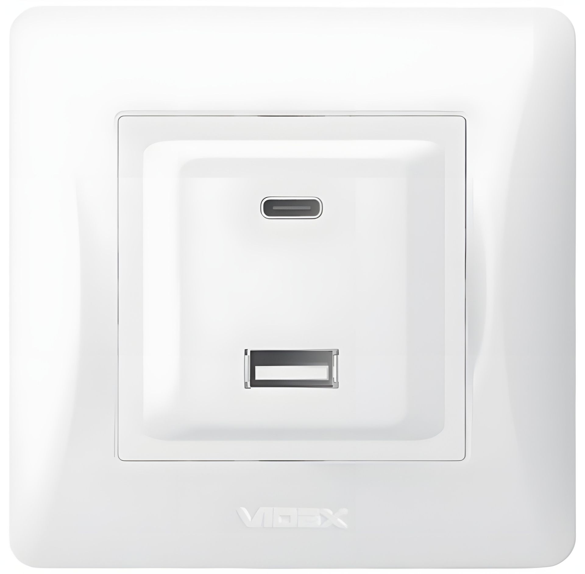 VIDEX Розетка BINERA USB-A + USB-C PD20W, зарядка швидка, 2 порти, біла (VF-BNCHRUC20-W)