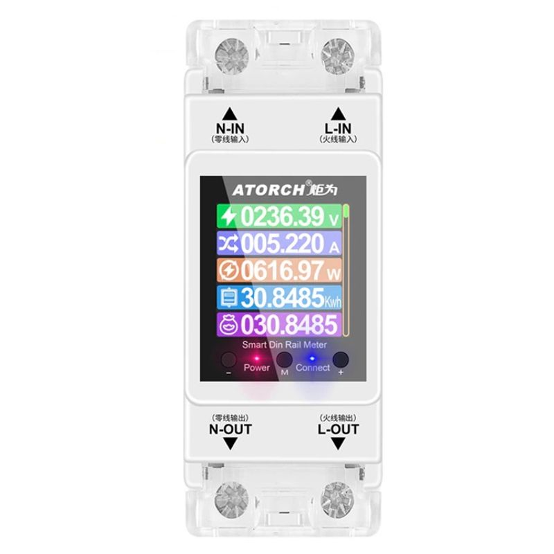 Розумний wifi лічильник електроенергії Atorch AT2PW - це унікальний продукт, від компанії Atorch, який виконує функції відразу декількох пристроїв, таких як лічильник електроенергії, реле напруги, вольтметр, амперметр, ватметр, PF метр і розумний автомат, який має 1.33" дюйма кольоровий екран, встановлюється на DIN рейку і витримує пристрої, що підключаються зі споживаним струмом до 100 Ампер (26,5 кВт), а також передає всю інформацію і керується через вашу wifi мережу через додаток на смартфоні Tuya або Smart life.