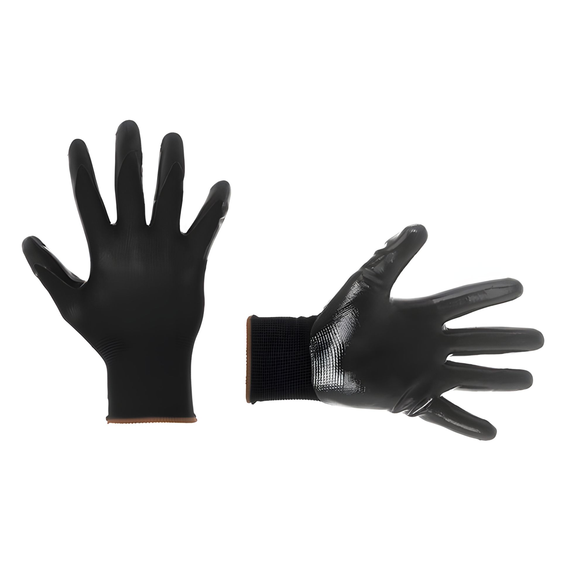 Долоні рукавиць вкриті сірим нітрилом для стійкішого захисту рук від забруднень і механічних пошкоджень. При цьому рукавиці не сковують рухи пальців. Мають в'язаний манжет для фіксації на зап'ясті проти потрапляння всередину пилу і дрібних частинок.