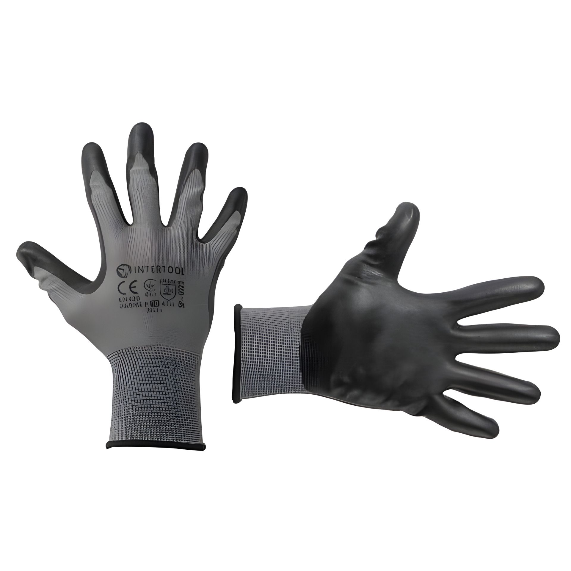 Рукавичка трикотажна з нітриловим покриттям на долоні, синтетична, сіра, 10" INTERTOOL SP-0122