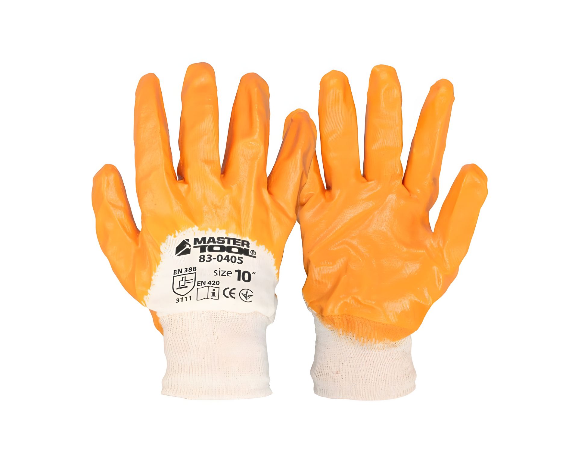 Рукавички бавовняні трикотажні нітрилове покриття ¾ в'язаний манжет 10" 12 пар оранжеві MASTERTOOL 83-0405doz