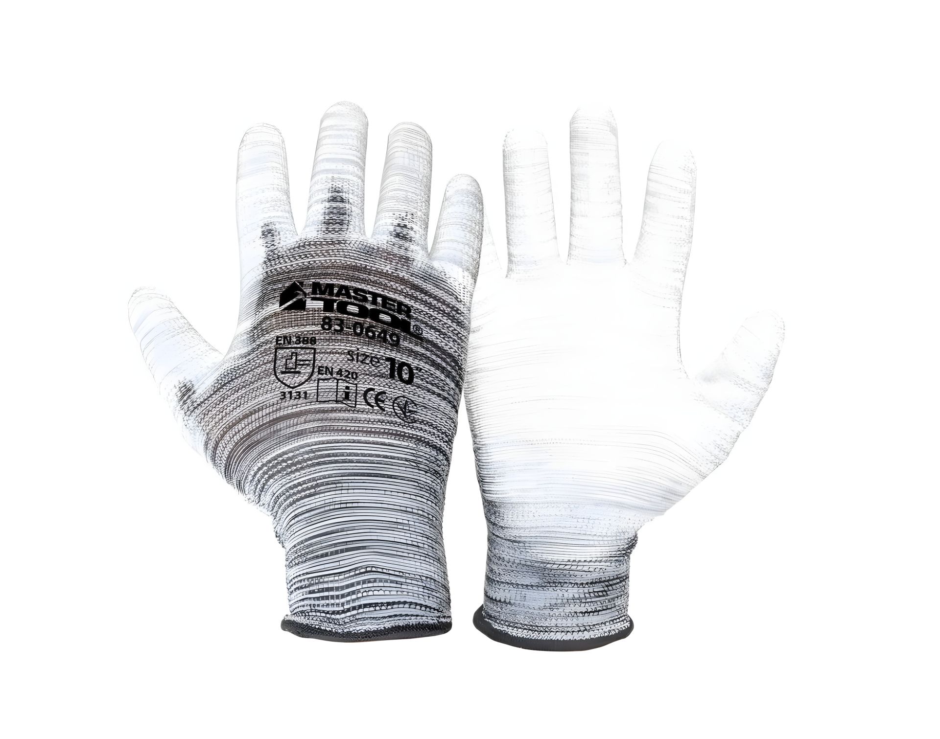 Безшовні трикотажні рукавички з поліуретановим покриттям долоні 10" (25-26 г) підвіс 12 пар меланж MASTERTOOL 83-0649doz