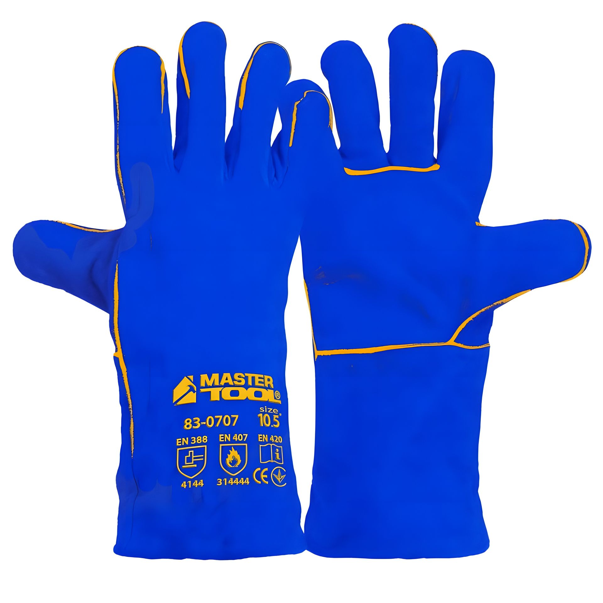Замшеві зварювальні краги 10.5" 350 мм підвіс сині MASTERTOOL 83-0707
