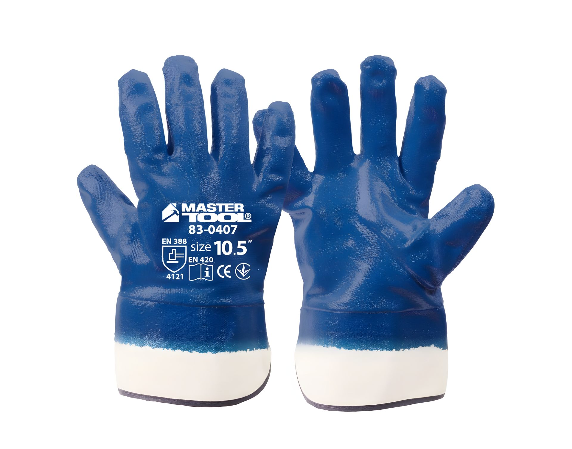 Рукавички масло-бензостійкі з повним нітриловим покриттям, манжет крага 10.5", сині MASTERTOOL 83-0407