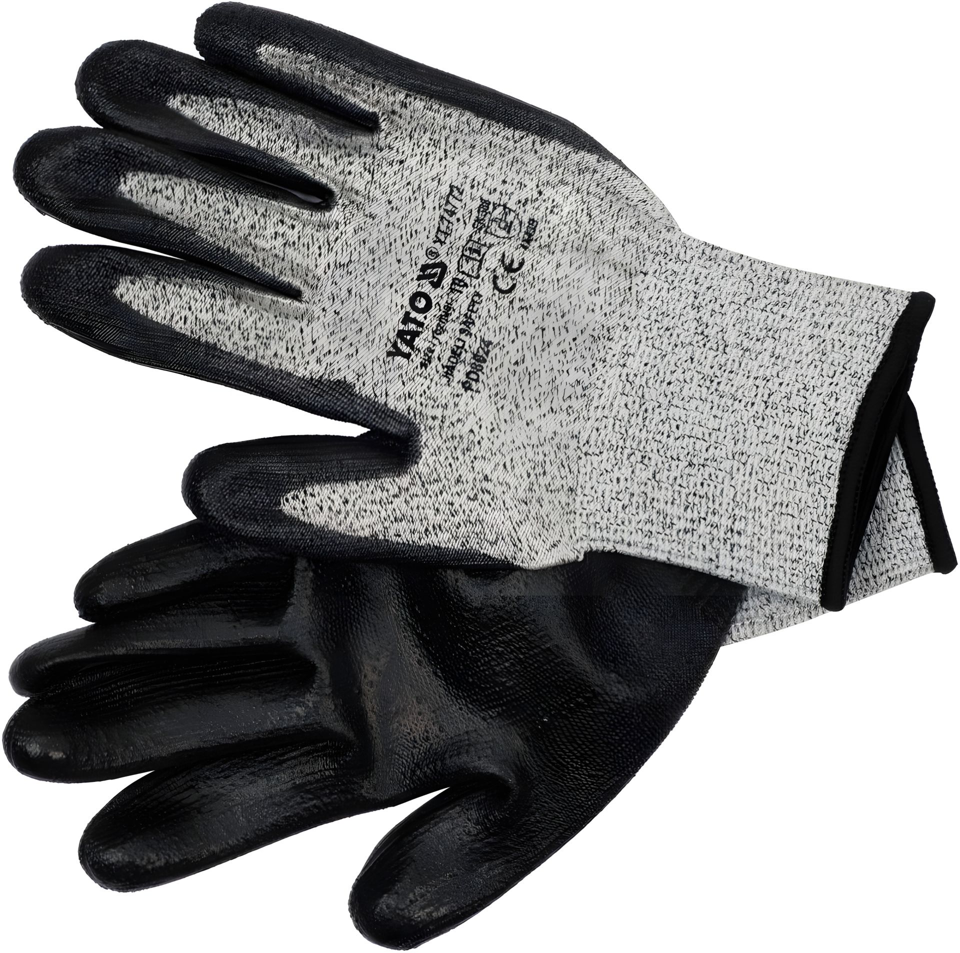 Рукавички поліетиленові (HPPE) YATO покриті чорним поліуретаном, розмір 10