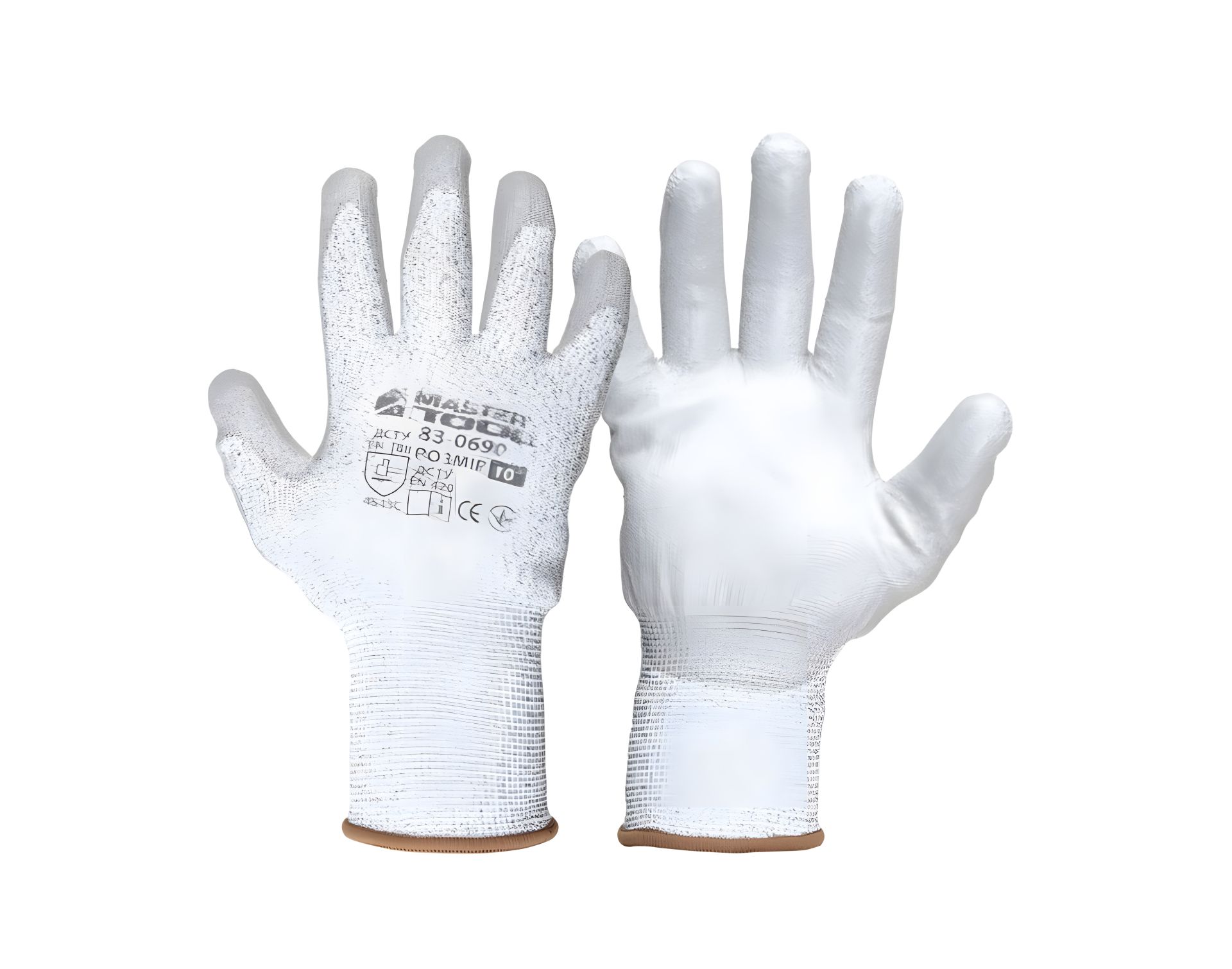 Порізостійкі рукавички з ПЕ волокна, 10", MASTERTOOL 83-0690