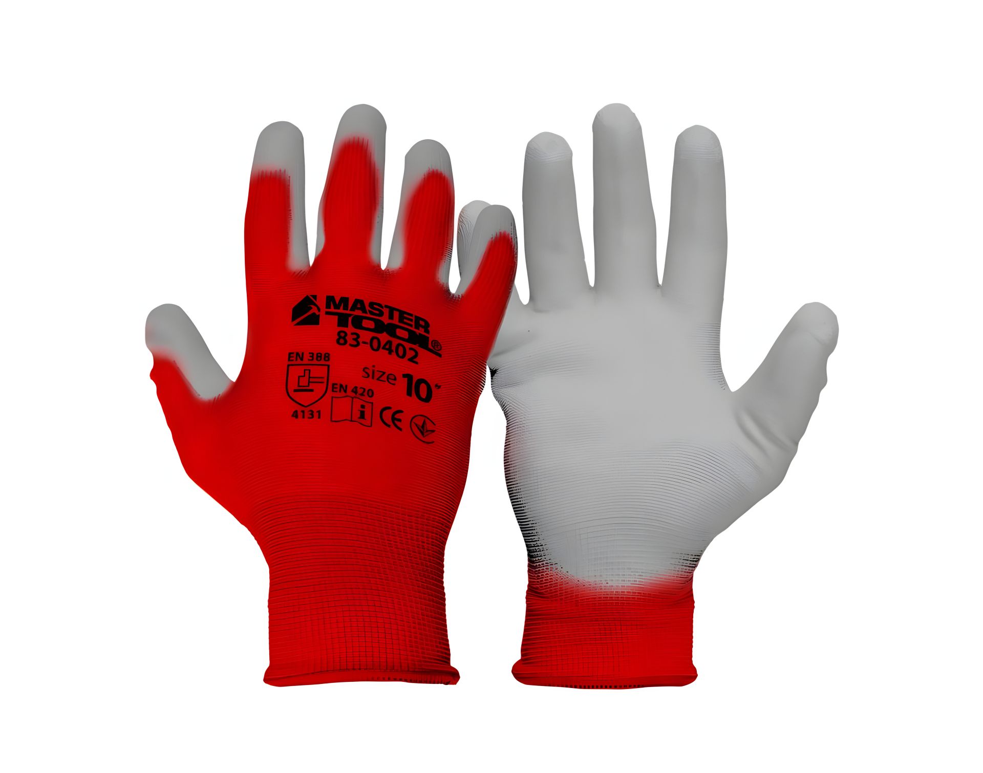 Трикотажні безшовні рукавички з нітриловим покриттям долоні 10" 12 пар червоно-сірі MASTERTOOL 83-0402doz