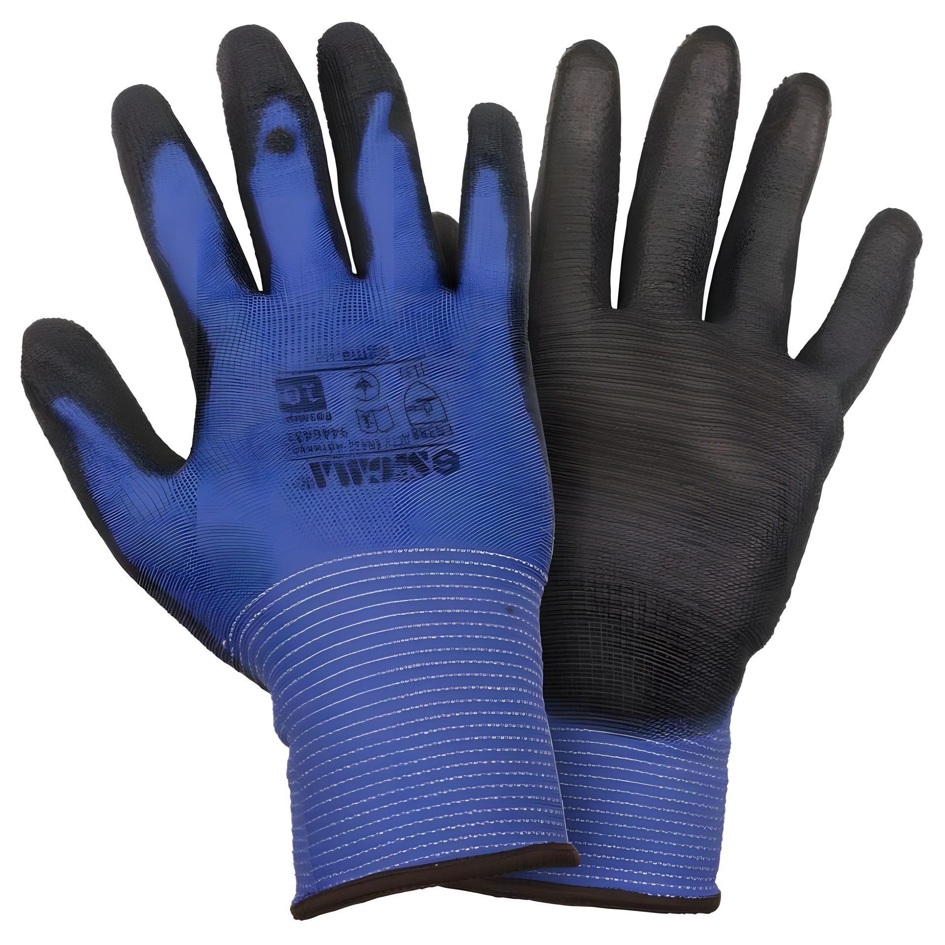 Трикотажні рукавички з частковим ПУ покриттям р10 (синьо-чорні манжет) SIGMA (9446431)