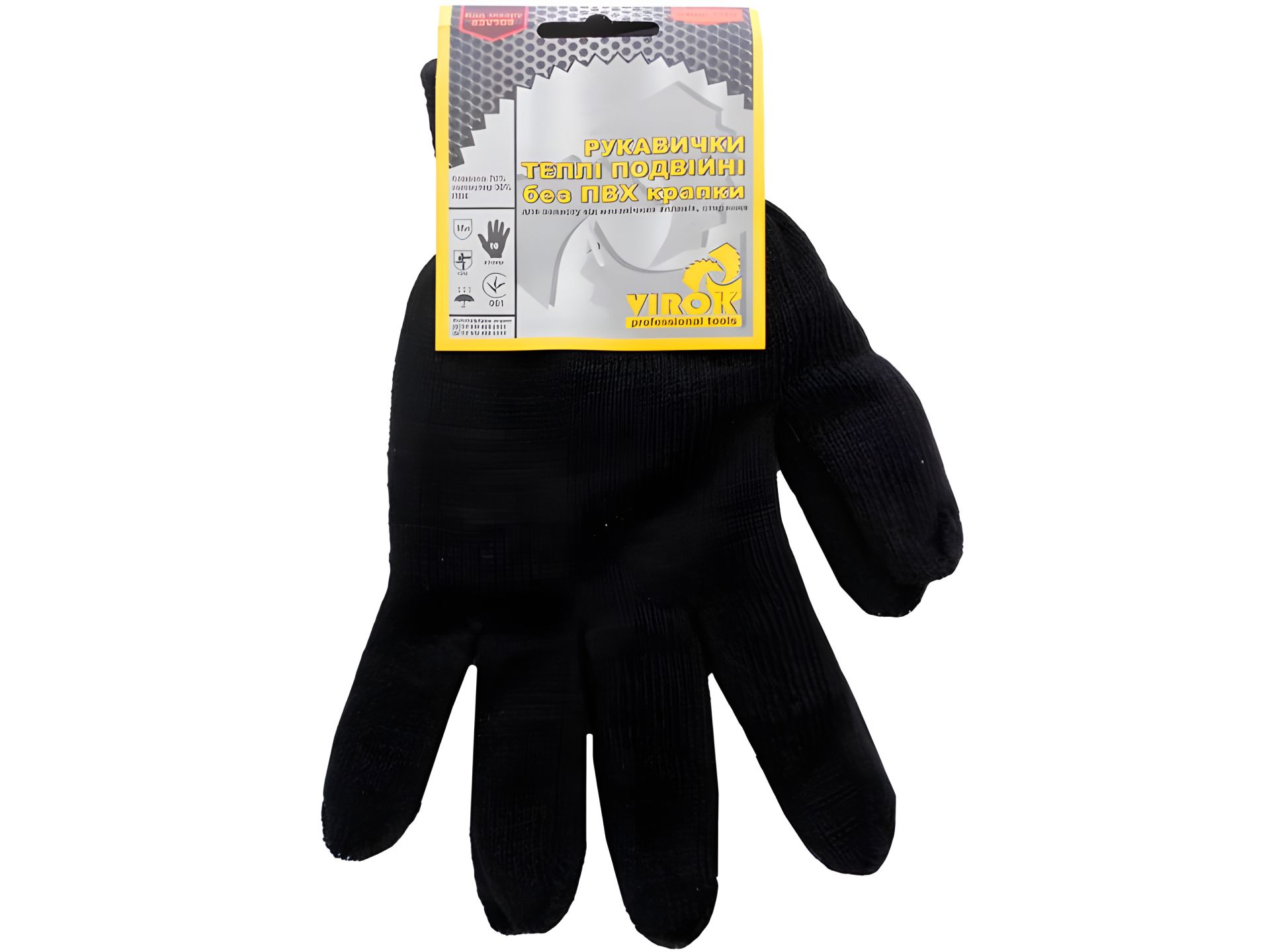 Подвійні трикотажні рукавички Virok 83V103 чорні, 7/10 клас, 70% бавовна, 30% поліестер, розмір 10