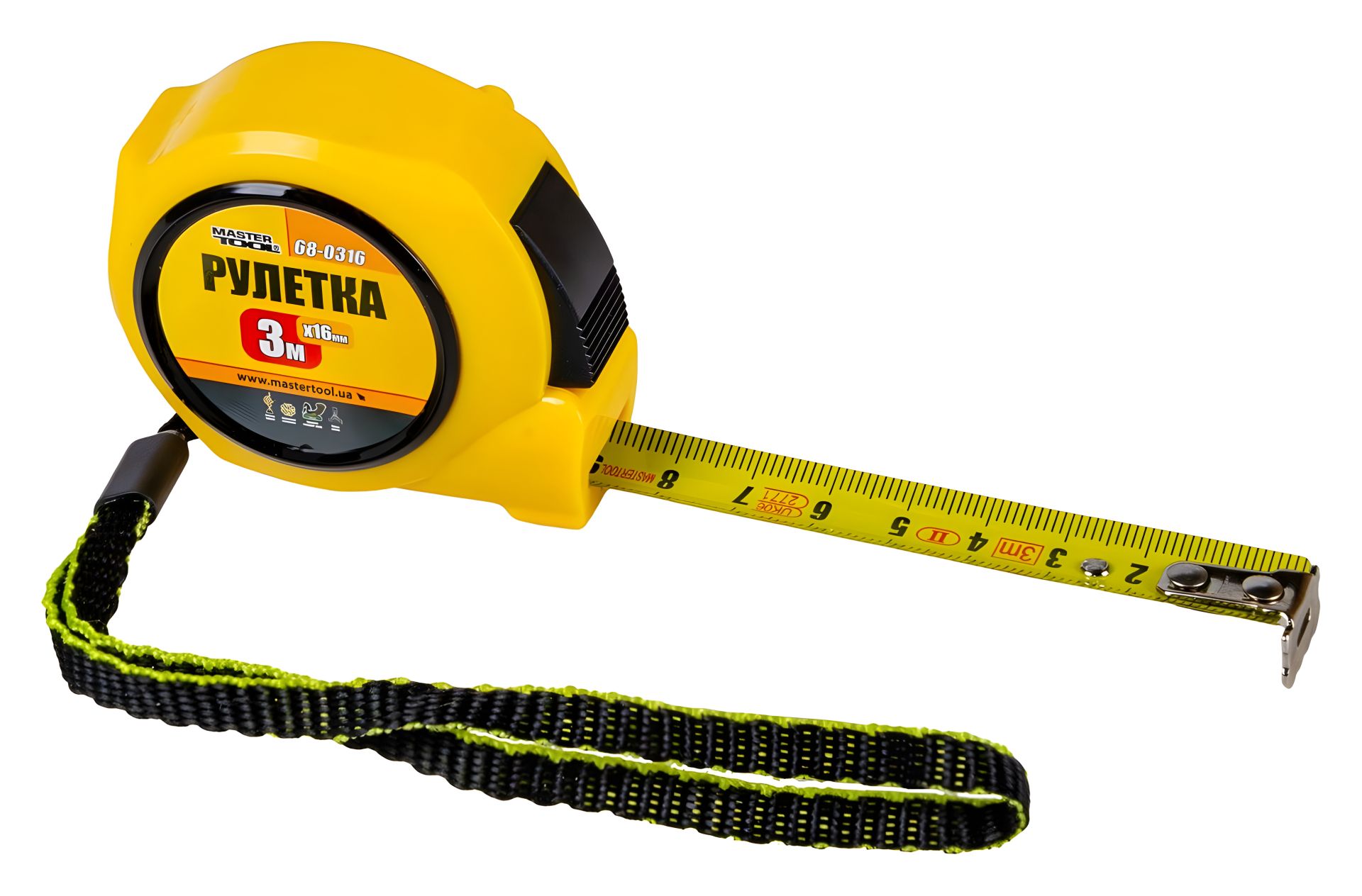 Рулетка 3 м×16 мм з автофіксацією MASTERTOOL 68-0316