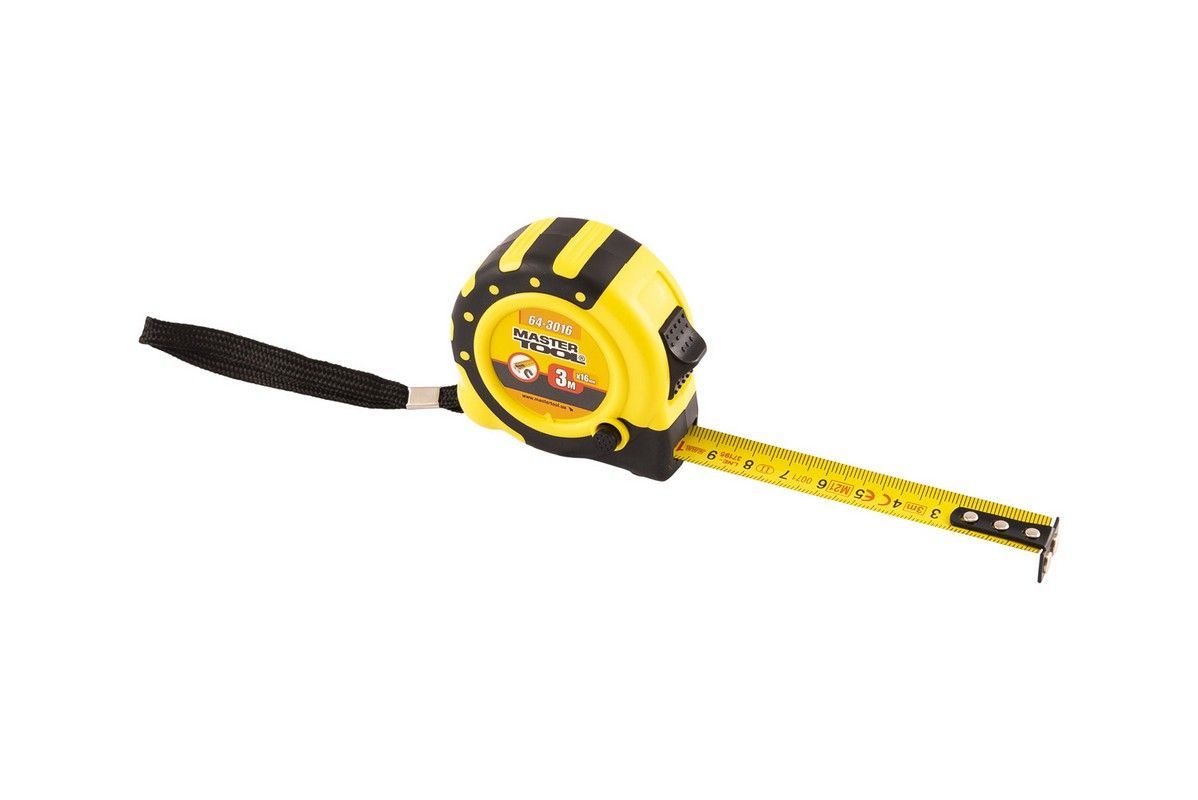 Рулетка 3 м х 16 мм з магнітами 2 фіксатора кнопка STOP покриття TPR нейлонове покриття MASTERTOOL 64-3016
