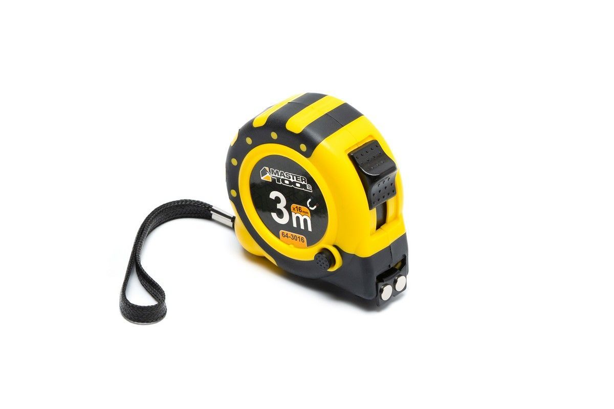 Рулетка 3 м х 16 мм з магнітами покриття нейлонове 2 фіксатора кнопка STOP покриття TPR MASTERTOOL 64-3016