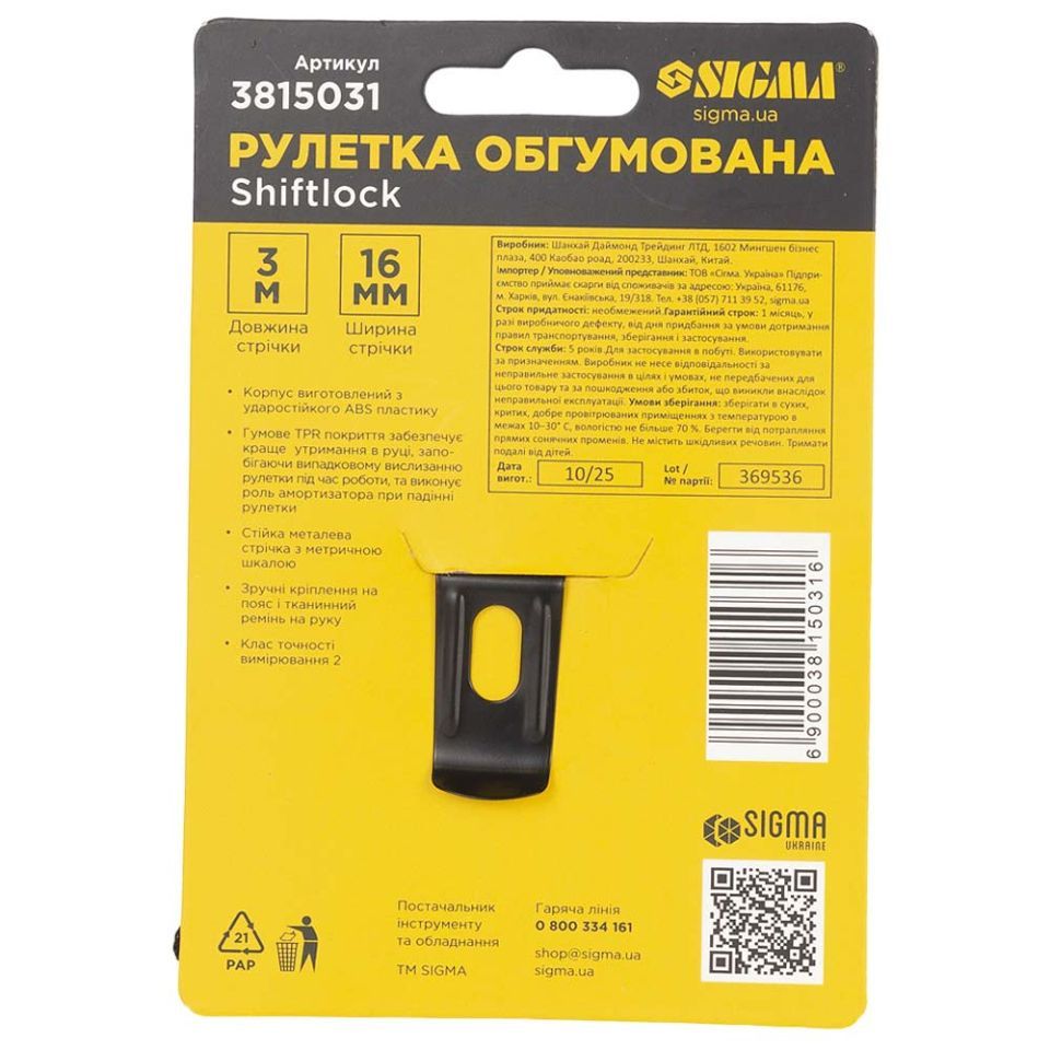Рулетка Shiftlock 3м×16мм SIGMA (3815031) призначена для проведення вимірювальних робіт.
