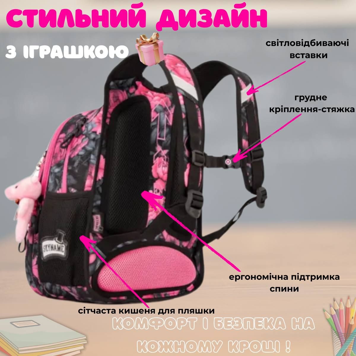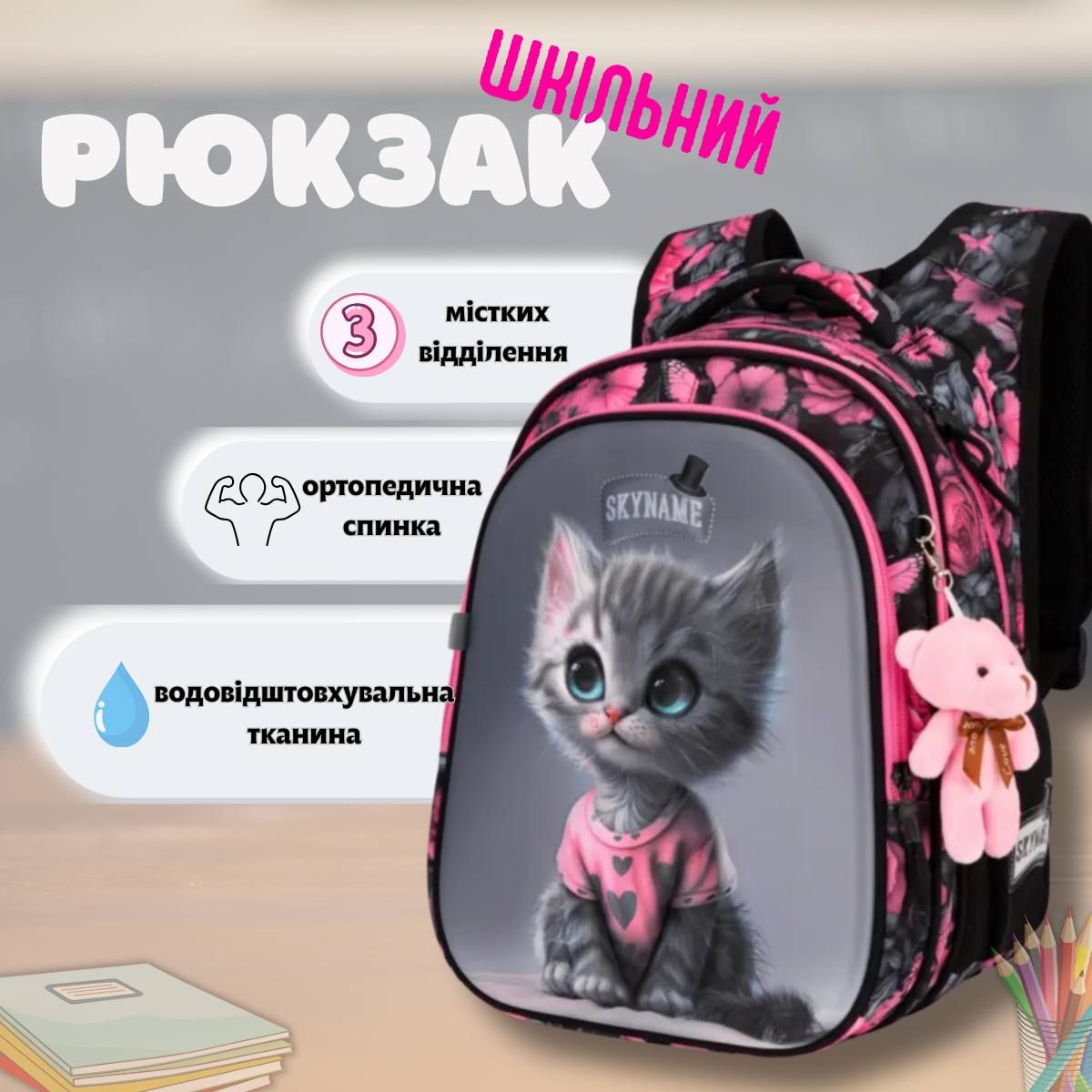 Рюкзак шкільний Кіт рожевий з чорним – це ідеальне рішення для дівчаток 1-4 класів, що поєднує комфорт, стиль і безпеку. Завдяки ортопедичній спинці, світловідбиваючим елементам і зручній організації внутрішнього простору, він стане незамінним супутником у шкільному житті.