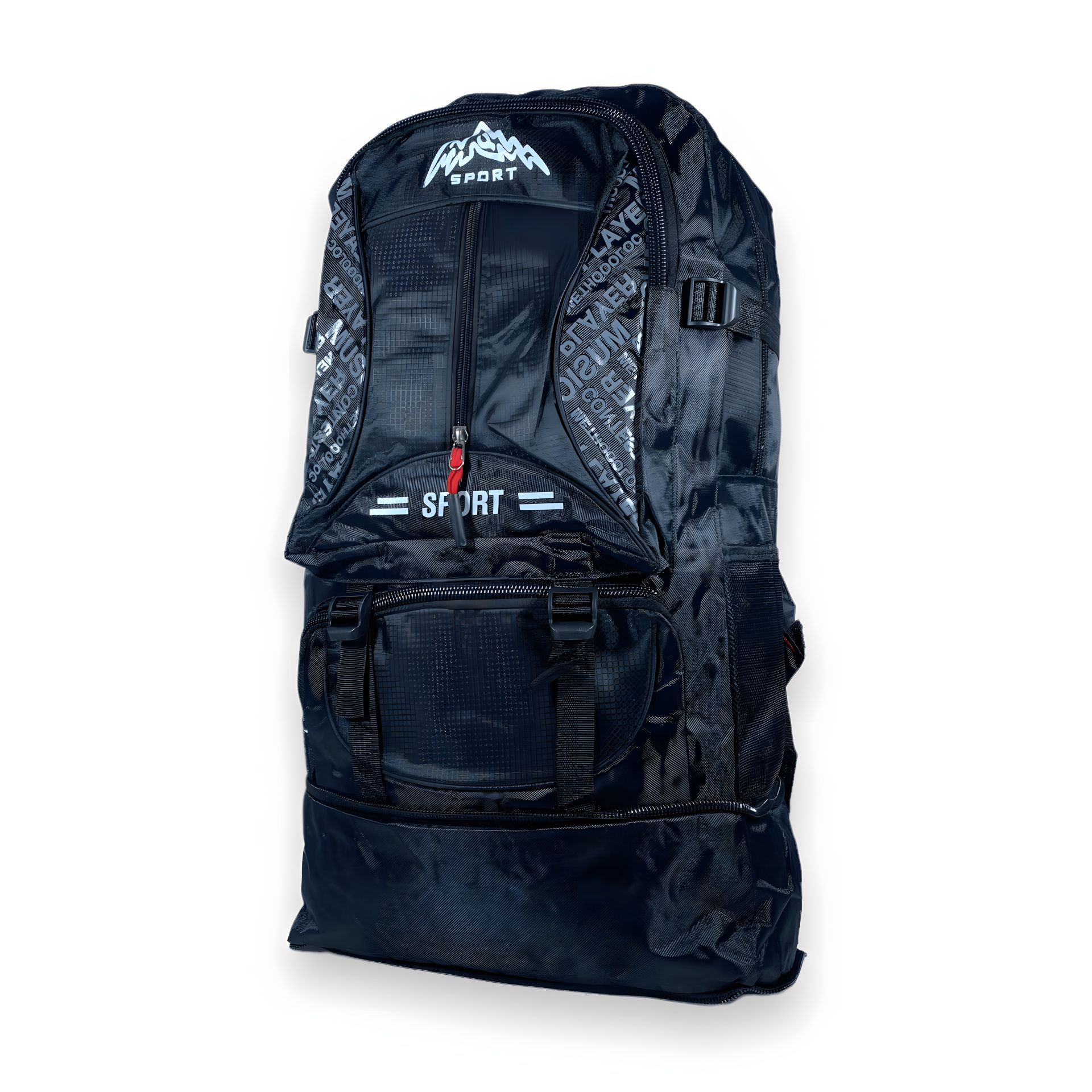 Туристичний рюкзак 35 л, з розширенням, один відділ, 3 фронтальні кишені, чорний