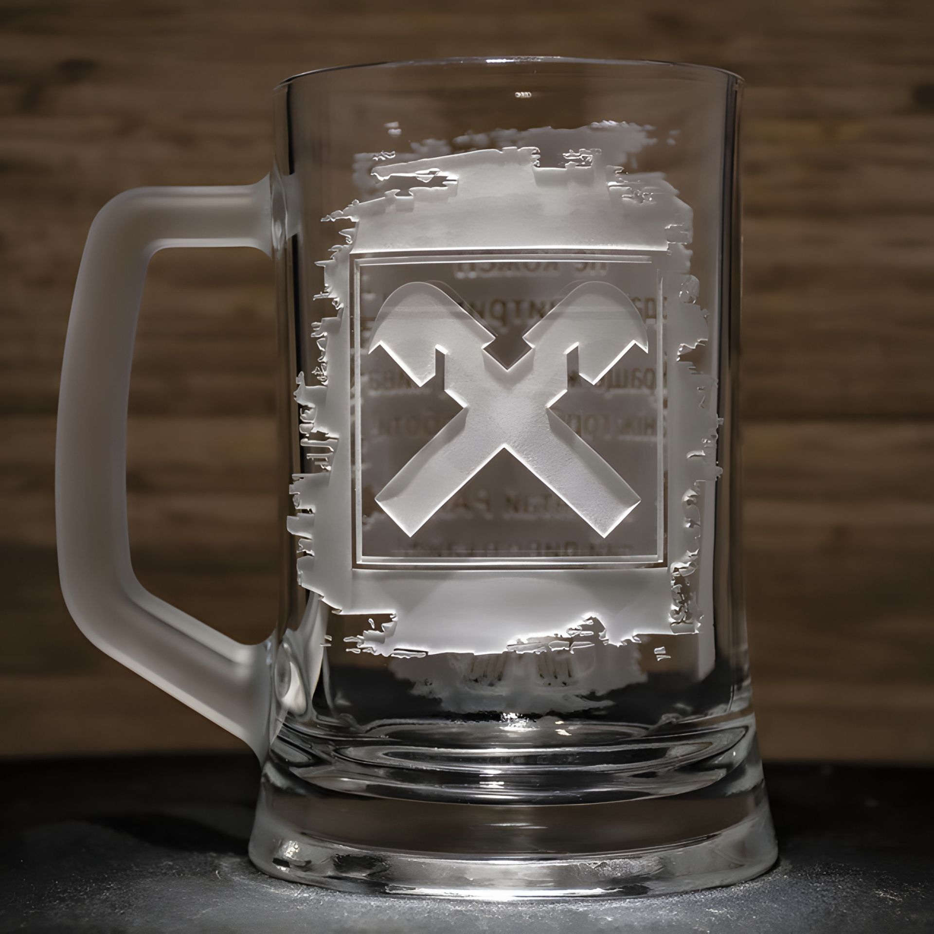 Кружка для пива з ручним мехнічним гравіюванням логотипу Замовника.
