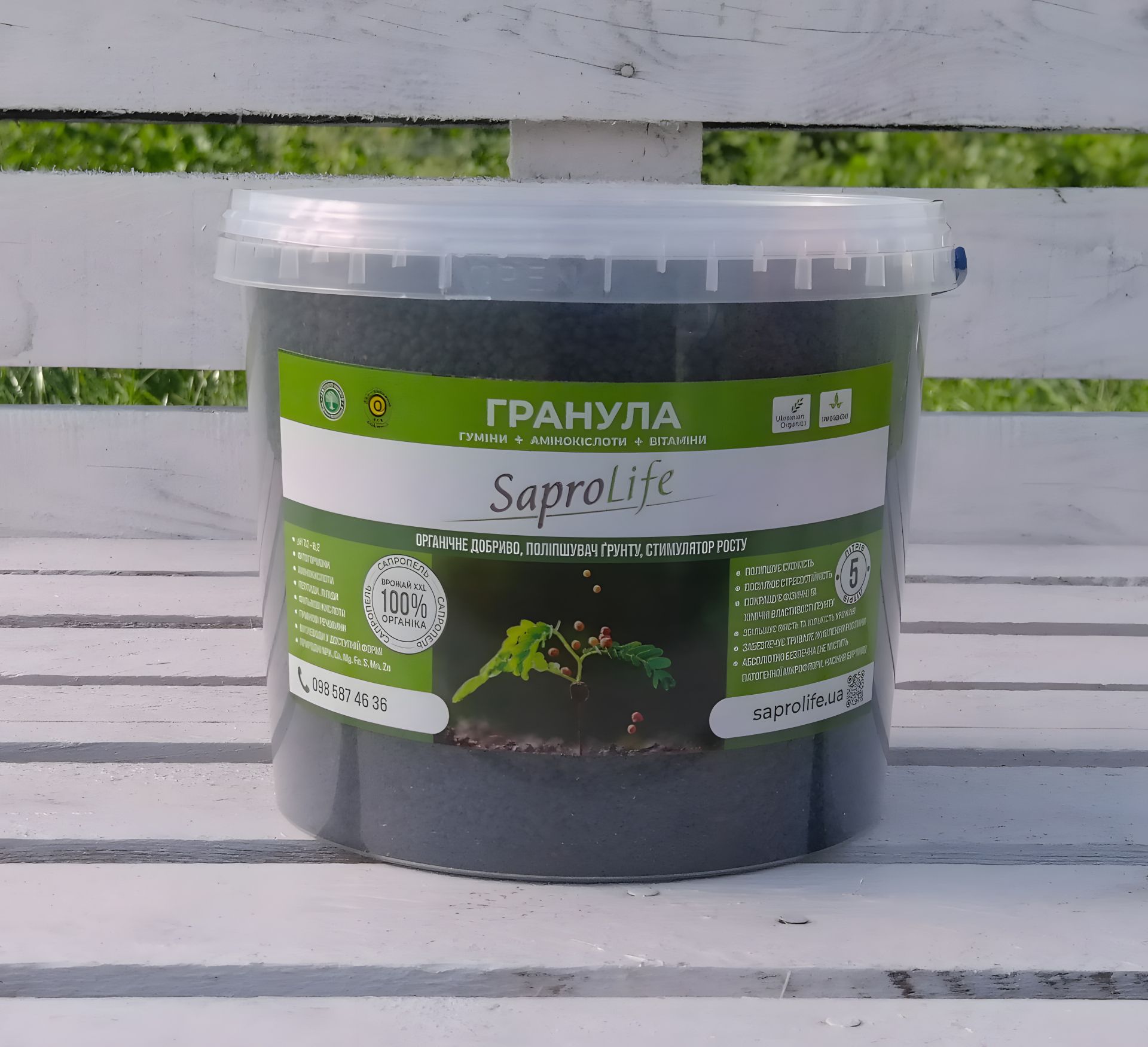 Гранульоване органічне добриво виготовлене із цільного сапропелю, до складу якого входять природні органічні компоненти, а також мезо-та мікроелементи. Використовується для органічного живлення рослин, активації процесів ґрунтоутворення, покращення водно-фізичних властивостей ґрунту. Вирішує проблему активації біологічних обмінних процесів у сільськогосподарських культурах.