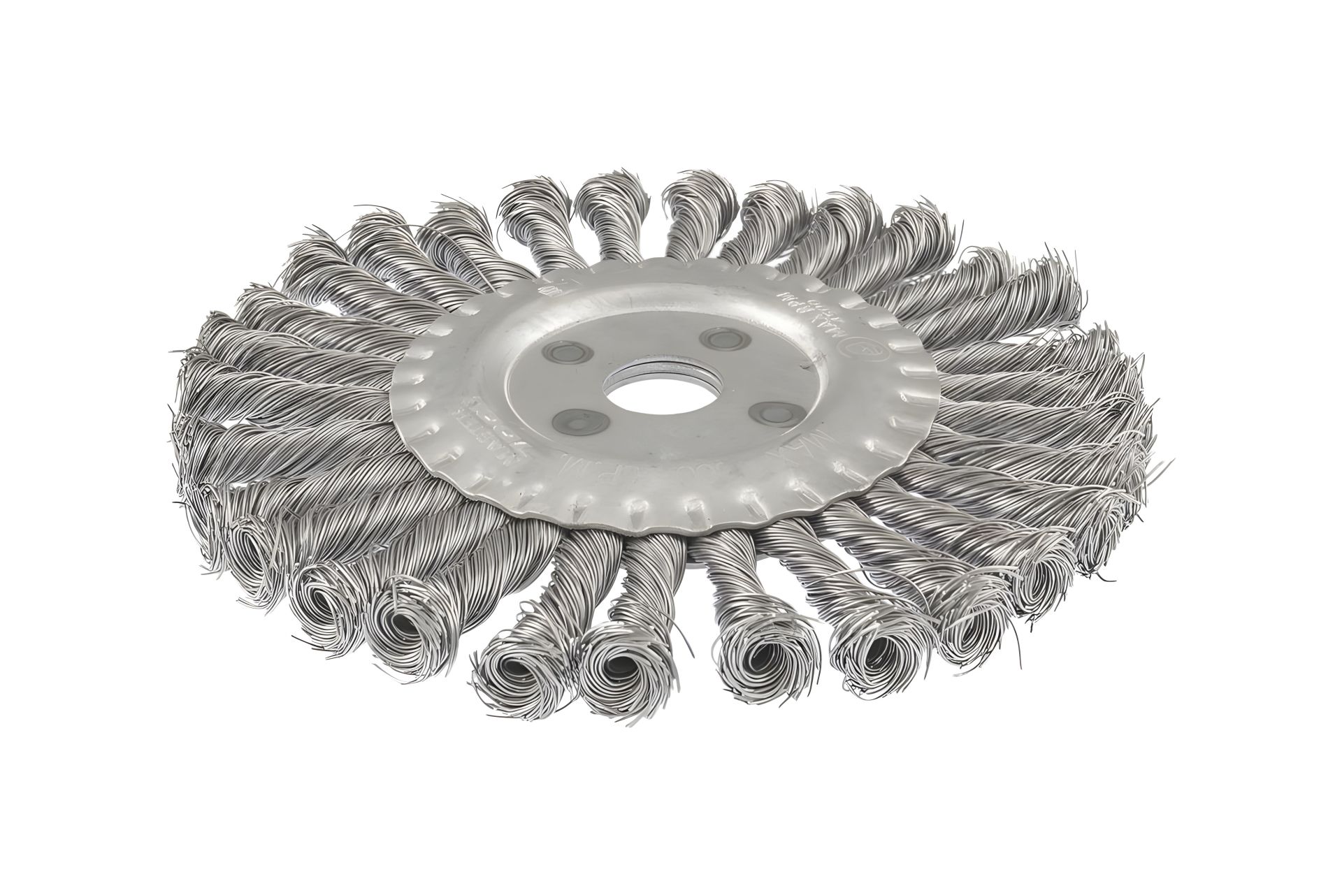 Щітка дискова із плетеного дроту Ø 200х22,2 мм призначена для інтенсивного очищення металевих поверхонь від іржі, окалини, старих лакофарбових покриттів, нагару та різних забруднень. Завдяки міцному сталевому плетеному дроту забезпечується висока зносостійкість і ефективність навіть при тривалому використанні. Посадковий отвір 22,2 мм дозволяє використовувати щітку з більшістю моделей кутових шліфувальних машин (болгарок).