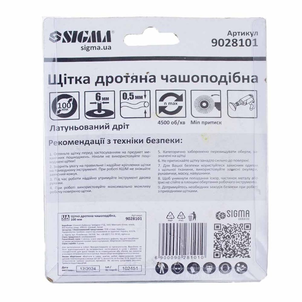 Щітка дротяна чашеподібна Ø100мм хвостовик Ø6мм (стала кручена) SIGMA (9028101)
