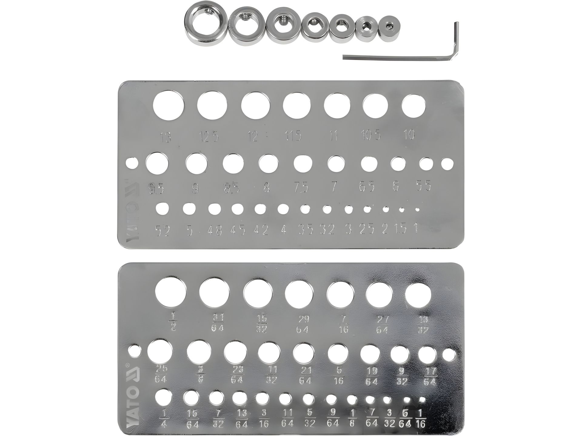 Шаблони контролю діаметрів і глибин свердління отворів Ø= 1-13 мм/1/16-1/2", 10 шт з ключем [20] від Yato YT-44095