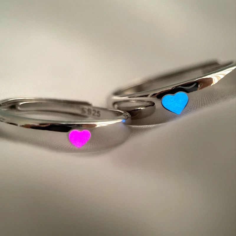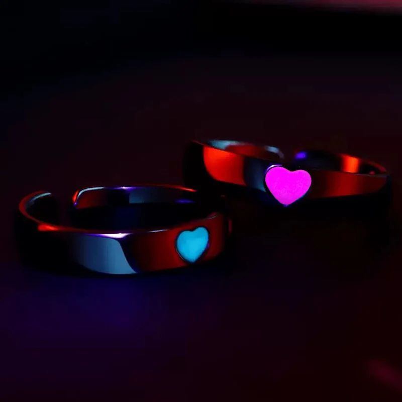 Набір парних кілець з серцем що світиться синій і рожевий для двох закоханих