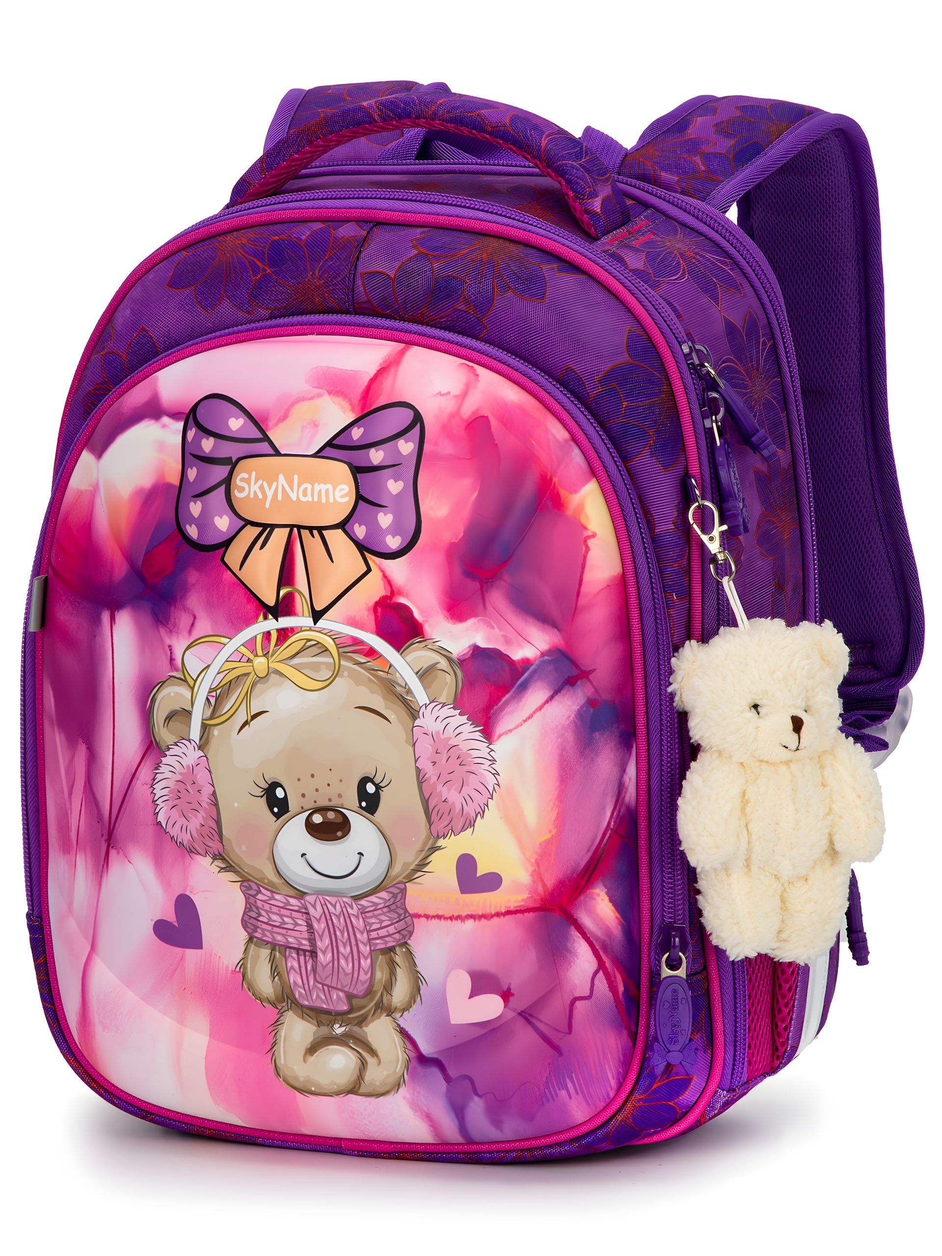 Стильний дизайн та принт: Рюкзак оформлений у фіолетовому кольорі з принтом "ведмедики", що натакє йому особливого шарму та робить його привабливим для маленьких дівчаток.