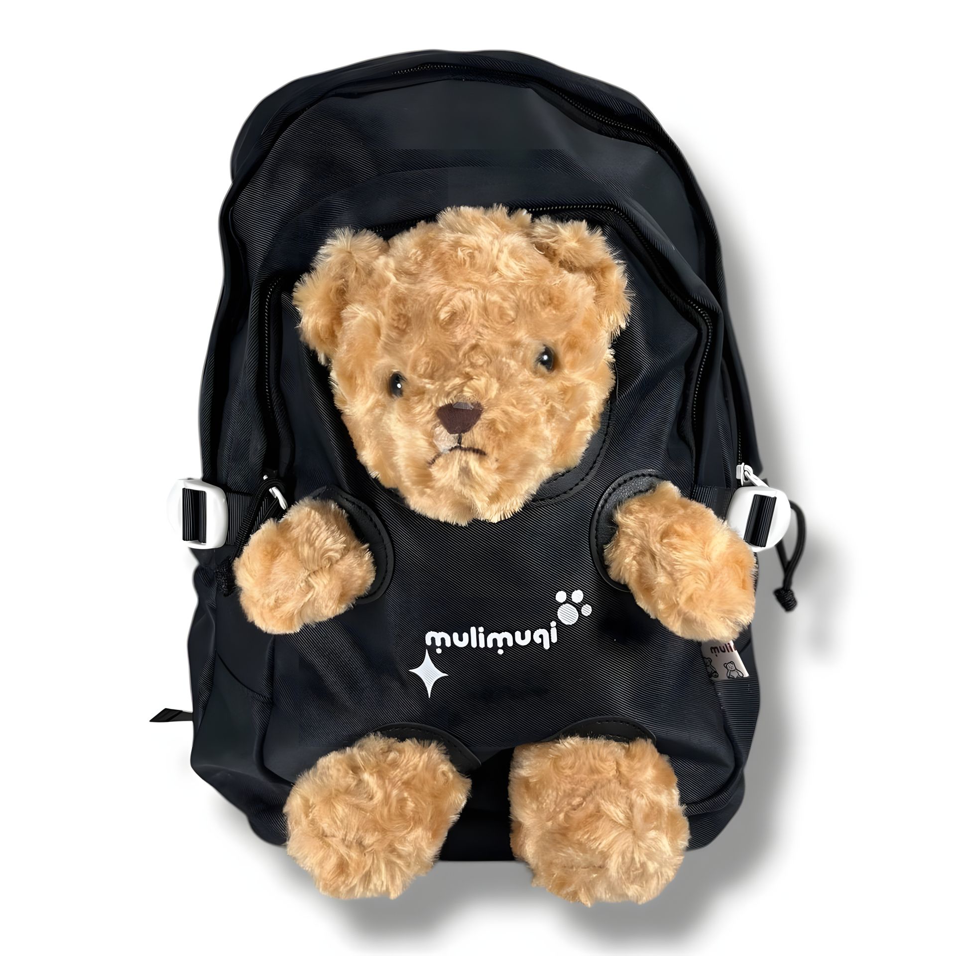 Чорний шкільний рюкзак для дівчаток з іграшкою