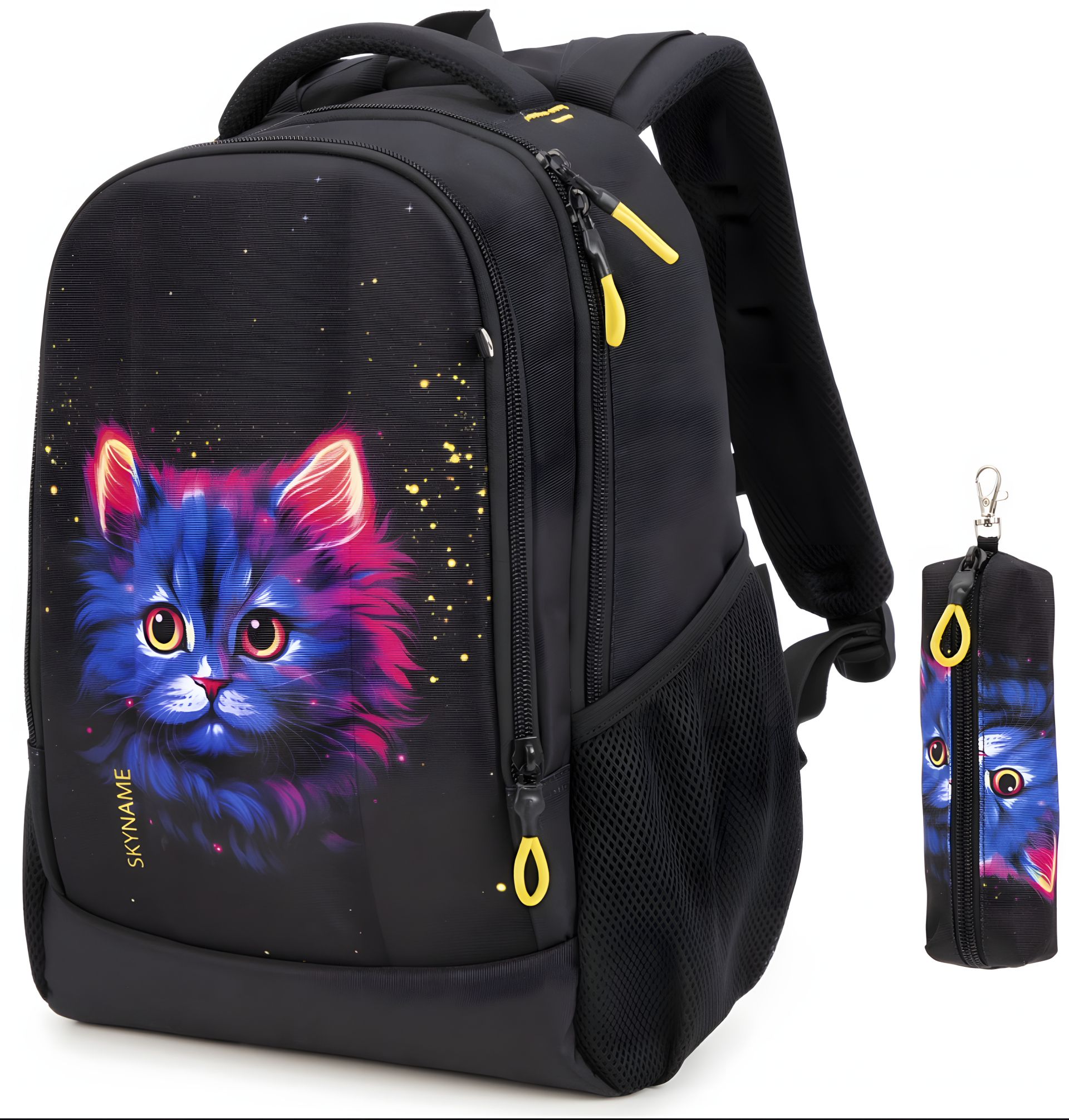 Шкільний рюкзак Winner/SkyName для підлітків, комплект з пеналом, принт "Котик", чорний В наявності